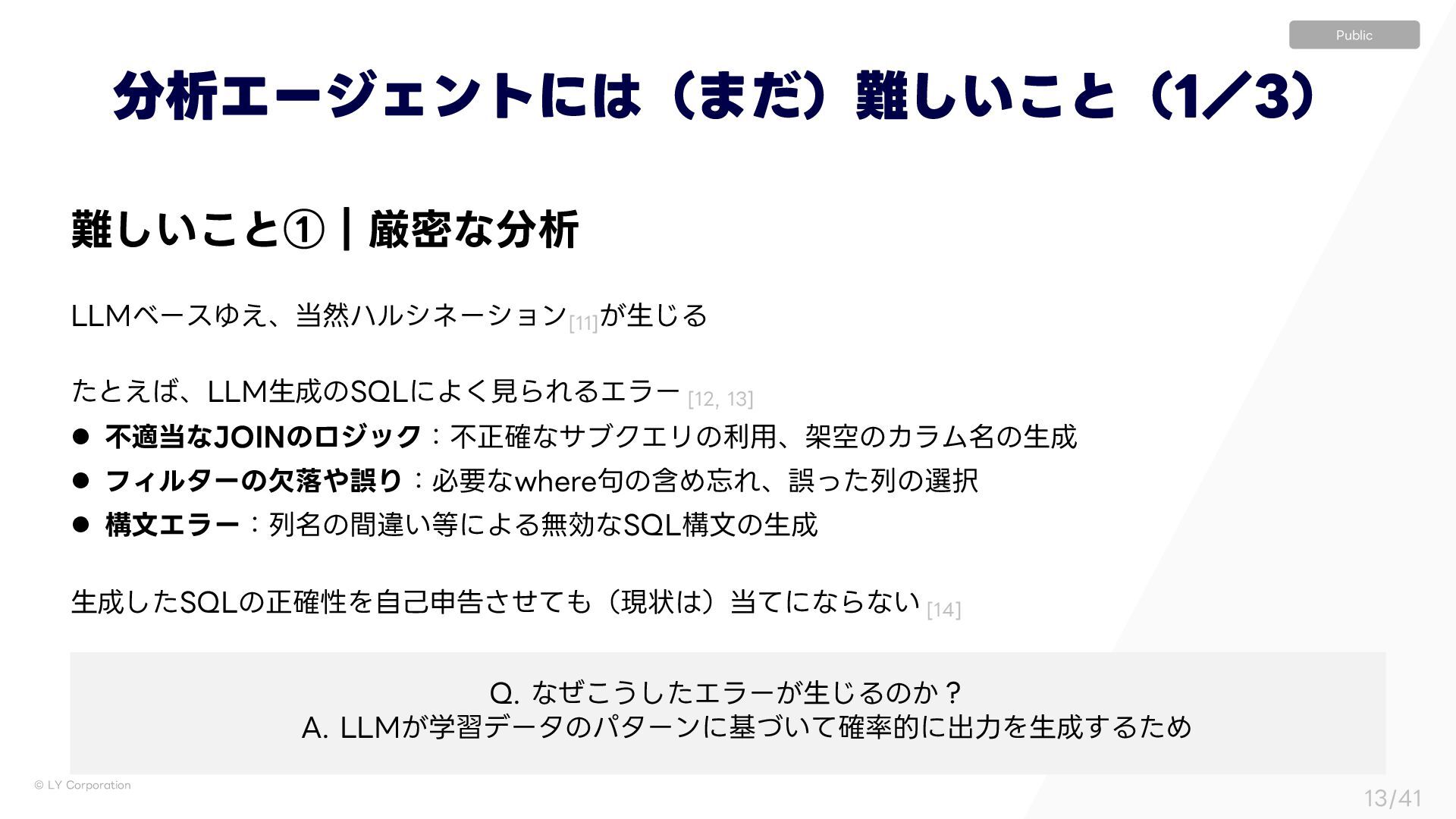 > l ෆదͳ+0*/ͷϩδοΫɿෆਖ਼֬ͳαϒΫΤϦͷར༻ɺՍۭͷΧϥϜ໊ͷੜ l ϑΟϧλʔͷܽམޡΓɿඞཁͳXIFSF۟ͷؚΊΕɺޡͬͨྻͷબ l ߏจΤϥʔɿྻ໊ͷؒҧ͍ʹΑΔແޮͳ42-ߏจͷੜ ੜͨ͠42-ͷਖ਼֬ੑΛࣗݾਃࠂͤͯ͞ʢݱঢ়ʣͯʹͳΒͳ͍ <> ੳΤʔδΣϯτʹʢ·ͩʣ͍͜͠ͱʢʗʣ