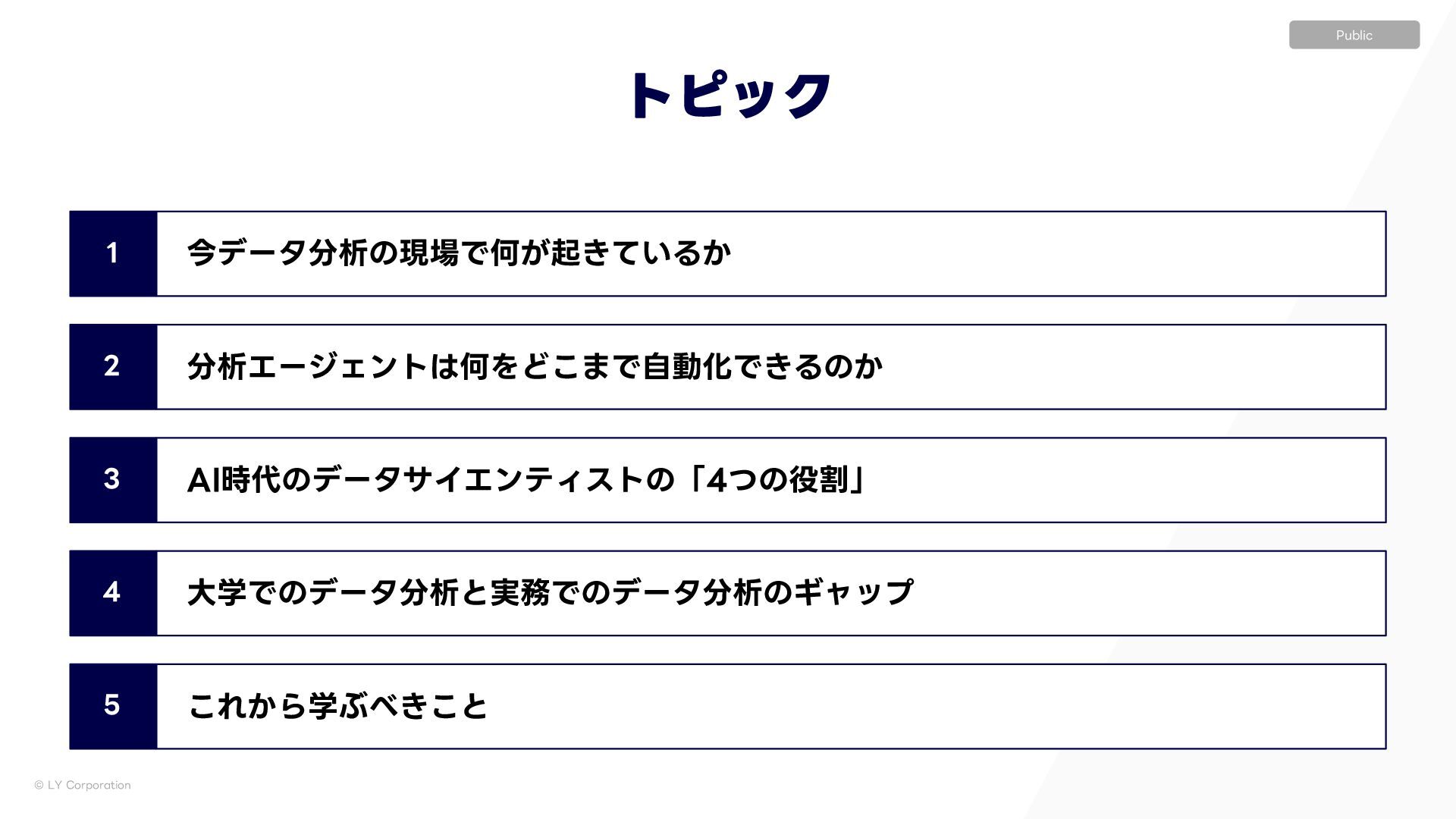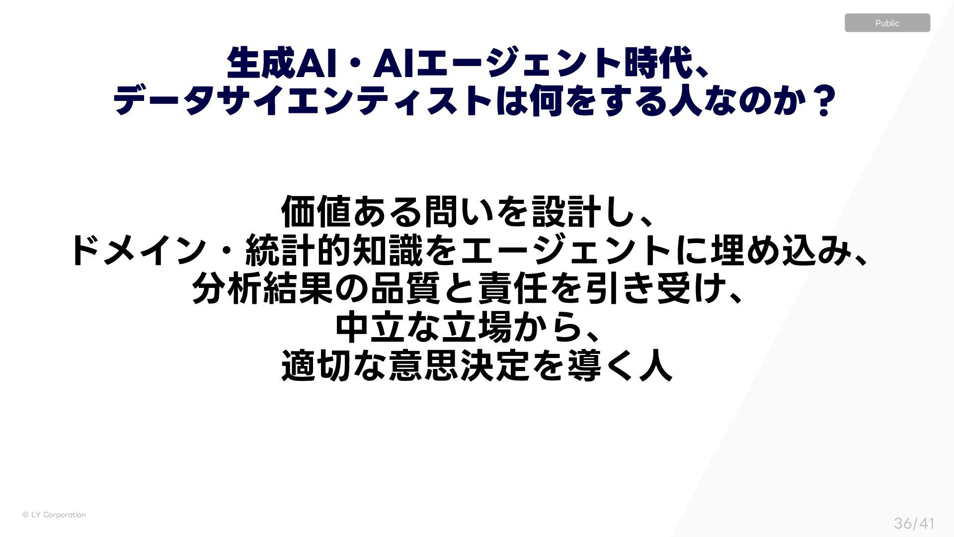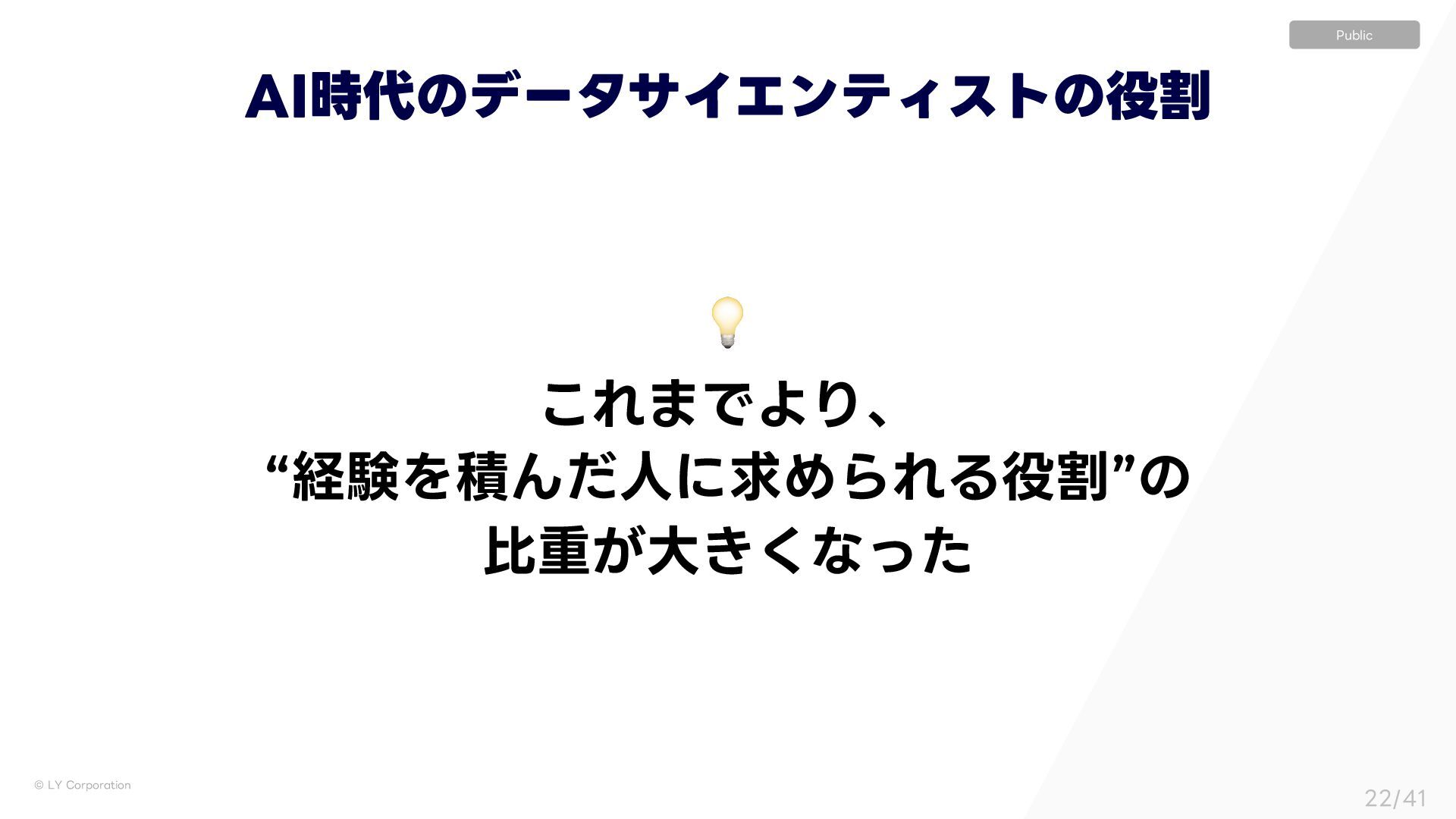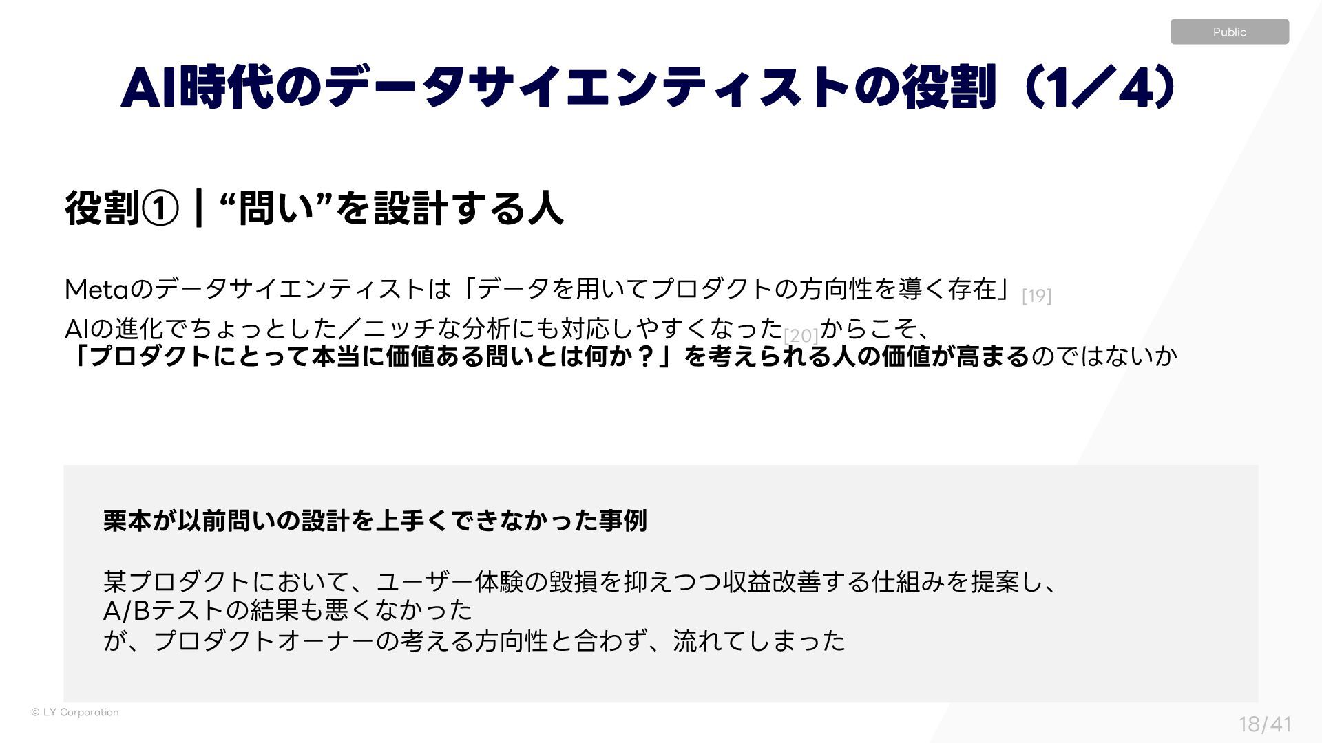 ٕज़ࣝɿҰఆҎ্ l ࣦഊͯ͠ࠔΔਓɿ͍ͳ͍ l ੳऀɿෳ l ใࠂରऀɿاըɺΤϯδχΞɺӦۀͳͲ l ॴଐ৫ɿෳ l ٕज़ࣝɿ༷ʑ l ࣦഊͯ͠ࠔΔਓɿͨ͘͞Μ͍Δ େֶͰͷσʔλੳ ࣮Ͱͷσʔλੳ ΪϟοϓʢʗʣʛεςʔΫϗϧμʔͷ༗ແ ࣮ʹ͓͍ͯɺεςʔΫϗϧμʔʢؔऀʣجຊతʹෳͷਓɾ৬छɾ৫ʹ·͕ͨͬͯଘࡏ͢Δ ͦͯ͠ɺͦΕͧΕ͕ҟͳΔඪɺ,1*ɺϞνϕʔγϣϯΛ࣋ͬͯಈ͍͍ͯΔ ˠ ʮੳऀઢͰͷ࠷ળʯ͕ʮશମʹͱͬͯ࠷ળʯͱݶΒͳ͍