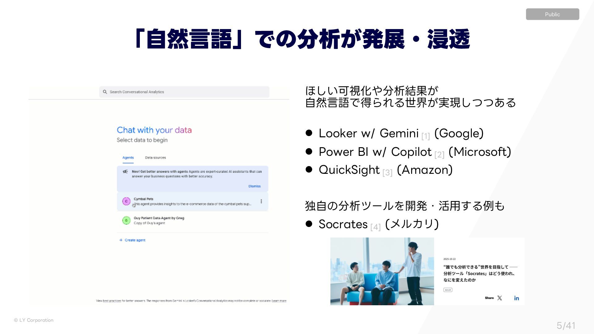 <>(FOFSBUJWF#*ػೳΛ׆༻ͯ͠"NB[PO2VJDL4JHIUͷੳͷຒΊࠐΈମݧΛڧԽ l <>l୭ͰੳͰ͖ΔzੈքΛࢦͯ͠ᴷᴷੳπʔϧʮ4PDSBUFTʯͲ͏ΘΕɺͳʹΛม͑ͨͷ͔ l <>5IF3JTFPG(FOFSBUJWF#*1MBUGPSNT8IBU*U.FBOTGPS%BUB5FBNT l <> "*ΤʔδΣϯτͱ l <> 3F"DU4ZOFSHJ[JOH3FBTPOJOHBOE"DUJOHJO-BOHVBHF.PEFMT l <>%445"3"TUBUFPGUIFBSUWFSTBUJMFEBUBTDJFODFBHFOU l <>69"HFOU"4ZTUFNGPS4JNVMBUJOH6TBCJMJUZ5FTUJOHPG8FC%FTJHOXJUI--."HFOUT ୈ෦ʛੳΤʔδΣϯτԿΛͲ͜·ͰࣗಈԽͰ͖Δͷ͔ l <>)PX"*XJMM%JTSVQU#*"T8F,OPX*U l <>--.ͱϋϧγωʔγϣϯʕجૅͱରࡦʕ l <>5FYUUP42-$PNQBSJTPOPG--."DDVSBDZ