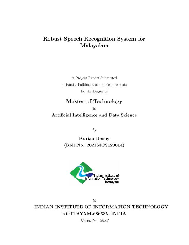 numbers,” World congress on nature and biological inspired comput- ing(NaBIC), IEEE, pp. 1475–1479, 2009. [7] Mohammed, Anuj, and N. K.N, “Hmm/ann hybrid model for continuous malayalam speech recognition,” Procedia Engineering, vol. 30, pp. 616– 622, 2012. [8] K. Manohar, A. Jayan, and R. Rajan, “Syllable subword tokens for open vocabulary speech recognition in malayalam,” NSURL, pp. 1–7, 2022. [9] A. T. Pratap, Vineel, “Scaling speech technology to 1,000+ languages,” Facebook Research publication, 2023. [10] Z. Zhang, L. Zhou, C. Wang, S. Chen, Y. Wu, S. Liu, Z. Chen, Y. Liu, H. Wang, J. Li, L. He, S. Zhao, and F. Wei., “Speak foreign languages with your own voice: Cross-lingual neural codec language modeling,” arXiv, abs/2303.03926, 2023. [11] G. A., C. H.S., and S. P. etl., “Clsril-23: Cross lingual speech represen- tations for indic languages.,” arXiv, abs/2107.07402., 2021. [12] M. Changrampadi, S. A., M. B. Narayanan, and N. Khan, “End-to-end speech recognition of tamil language,” Intelligent Automation and Soft Computing, vol. 32, p. 1309–1323, 11 2021. [13] T. Javed, S. Doddapaneni, A. Raman, K. S. Bhogale, G. Ramesh, A. Kunchukuttan, P. Kumar, and M. M. Khapra, “Towards building asr systems for the next billion users,” in Proceedings of the AAAI Con- ference on Artificial Intelligence, vol. 36, pp. 10813–10821, 2022. 38