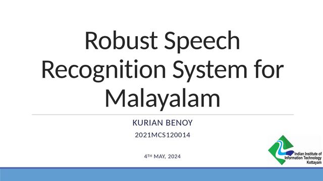 Zisserman. "WhisperX: Time-accurate speech transcription of long-form audio." In: Interspeech conference (2023). 8. Gopinath, Deepa P., and Vrinda V. Nair. "IMaSC--ICFOSS Malayalam Speech Corpus." arXiv preprint arXiv:2211.12796 (2022). 9. Benoy Kurian et al., In: https://github.com/kurianbenoy/whisper_normalizer 10. Dinesh S Akshay, Thottingal Santhosh et al., In: https://github.com/libindic/normalizer 11. Kunchukuttan Anoop et al., In: https://github.com/anoopkunchukuttan/indic_nlp_library 12. S. wen Yang, P.-H. Chi, Y.-S. Chuang, C.-I. J. Lai, K. Lakhotia, Y. Y.Lin, A. T. Liu, J. Shi, X. Chang, G.-T. Lin, T.-H. Huang, W.-C. Tseng, K. tik Lee, D.-R. Liu, Z. Huang, S. Dong, S.-W. Li, S. Watanabe, A. Mohamed, and H. yi Lee, “SUPERB: Speech Processing Universal PERformance Benchmark,” in Proc. Interspeech 2021, pp. 1194–1198, 2021