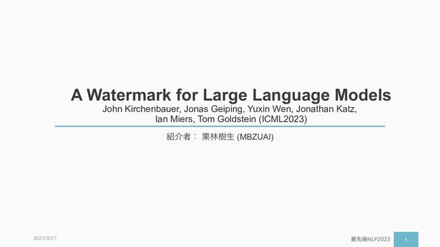 (લํจ຺) ᶄཚΛ༻͍ͯ ޠኮू߹𝒱Λ ੍ݶޠኮ𝑅ͱ ީิޠኮ𝐺ʹׂ ʢ 𝐺 = 𝛾 𝒱 ; 0 < 𝛾 < 1 ʣ a to the you it ᶅީิޠኮ𝐺͔Β୯ޠΛαϯϓϧ 𝑤! =you ʲಁ͔͠ͷೖΕํʳ ֤୯ޠΛੜ͢Δࡍͷީิޠኮ𝐺Λ લ୯ޠɾϋογϡؔɾཚੜث͔ΒఆΊΔ ᶃલͷ୯ޠΛͱʹཚੜ • The watermark cannot be removed without modifying a significant fraction of the generated tokens. • We can compute a rigorous statistical measure of con- fidence that the watermark has been detected. 1.1. Notation & Language model basics Language models have a “vocabulary” V containing words or word fragments known as “tokens.” Typical vocab- ularies contain |V| = 50, 000 tokens or more (Radford et al., 2019; Liu et al., 2019). Consider a sequence of T tokens {s(t)} 2 VT . Entries with negative indices, s( Np) , · · · , s( 1), represent a “prompt” of length Np and s(0) , · · · , s(T ) are tokens generated by an AI system in re- sponse to the prompt. A language model (LM) for next word prediction, is a func- tion f, often parameterized by a neural network, that accepts as input a sequence of known tokens s( Np) , · · · , s(t 1), which contains a prompt and the first t 1 tokens already produced by the language model, and then outputs a vector of |V | logits, one for each word in the vocabulary. These logits are then passed through a softmax operator to convert them into a discrete probability distribution over the vocab- ulary. The next token at position t is then sampled from this distribution using either standard multinomial sampling, or greedy sampling (greedy decoding) of the single most likely next token. Additionally, a procedure such as beam search can be employed to consider multiple possible sequences before selecting the one with the overall highest score. We start out by describing a simple “hard” red list watermark in Algorithm 1 that is easy to analyze, easy to detect and hard to remove. The simplicity of this approach comes at the cost of poor generation quality on low entropy sequences. We will discuss more sophisticated strategies later. Algorithm 1 Text Generation with Hard Red List Input: prompt, s( Np) · · · s( 1) for t = 0, 1, · · · do 1. Apply the language model to prior tokens s( Np) · · · s(t 1) to get a probability vector p(t) over the vocabulary. 2. Compute a hash of token s(t 1) , and use it to seed a random number generator. 3. Using this seed, randomly partition the vocab- ulary into a “green list” G and a “red list” R of equal size. 4. Sample s(t) from G , never generating any token in the red list. end for The method works by generating a pseudo-random red list of tokens that are barred from appearing as s(t) . The red list generator is seeded with the prior token s(t 1), enabling the red list to be reproduced later without access to the entire generated sequence. ※ଓฤ[Kirchenbauer+23]Ͱɼલ୯ޠҎ֎͔ΒཚΛܾΊΔ͜ͱݕ౼ɽ֓Ͷ্ड़ͷγϯϓϧͳํ๏Ͱྑ͍ 𝑝(𝑤!|𝑤$!) 𝒱