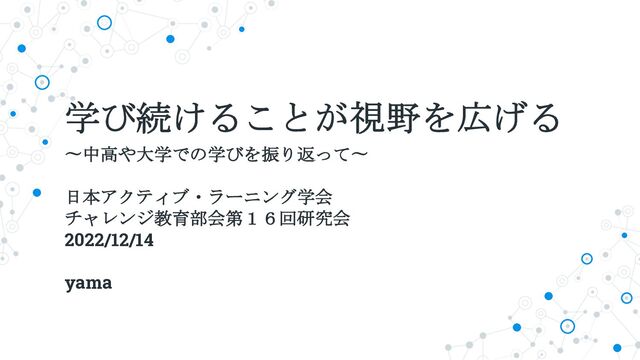 学び続けることが視野を広げる 〜中高や大学での学びを振り返って〜 日本アクティブ・ラーニング学会 チャレンジ教育部会第16回研究会 2022/12/14 yama