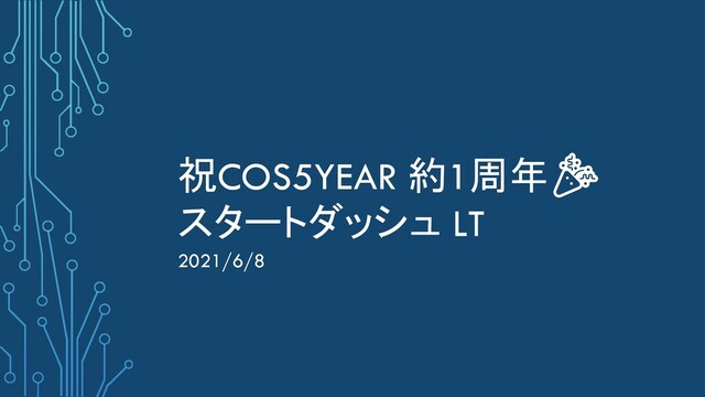 Cos5year約1周年記念をお祝いしてこの1年を振り返る会とハッカソンの極意についてお話しします。