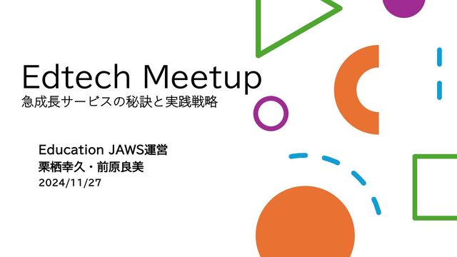 Edtech Meetup 急成長サービスの秘訣と実践戦略 Education JAWS運営 栗栖幸久・前原良美 2024/11/27