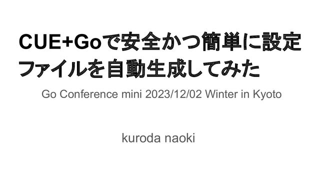 CUE+Goで安全かつ簡単に設定 ファイルを自動生成してみた Go Conference mini 2023/12/02 Winter in Kyoto kuroda