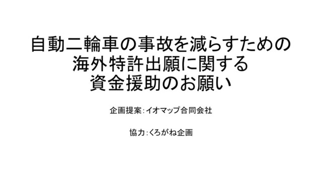 海外の事故を減らすようにこの特許を共通規格にするため、皆様のご協力をお願いいたします。