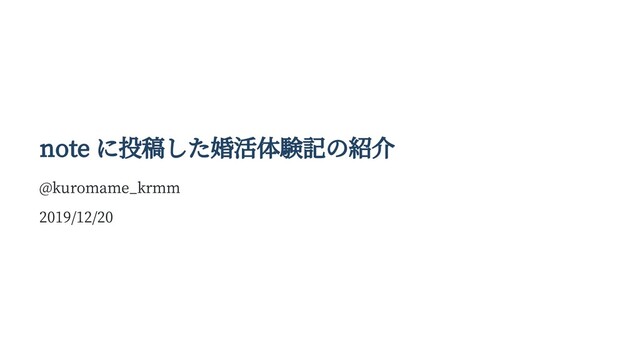 note に投稿した婚活体験記の紹介 @kuromame_krmm 2019/12/20
