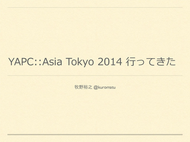 ༟೭ @kuromatu YAPC::Asia Tokyo 2014 ⾏行行ってきた