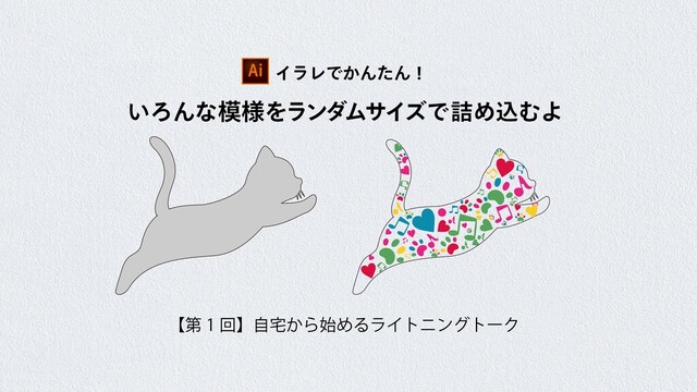 Illustratorの無料スクリプトを利用し、指定した枠の中にいろんな模様をランダムサイズで敷き詰めます。色もスクリプトでランダムに変更!