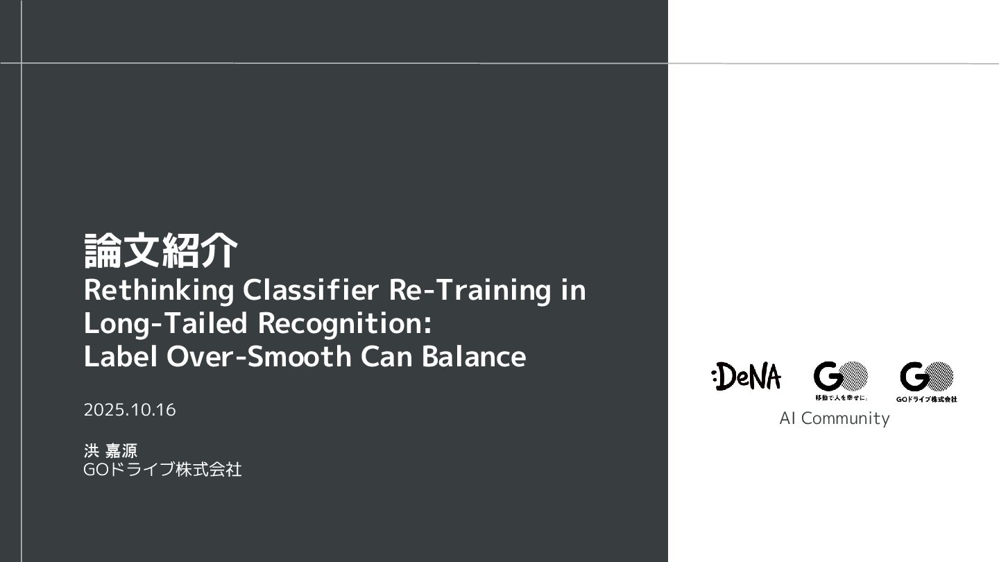 AI Community 2025.10.16 洪 嘉源 GOドライブ株式会社 論文紹介 Rethinking Classifier Re-Training