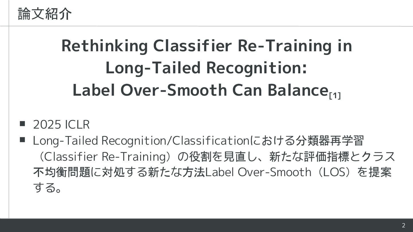 2 論文紹介 Rethinking Classifier Re-Training in Long-Tailed Recognition: Label Over-Smooth