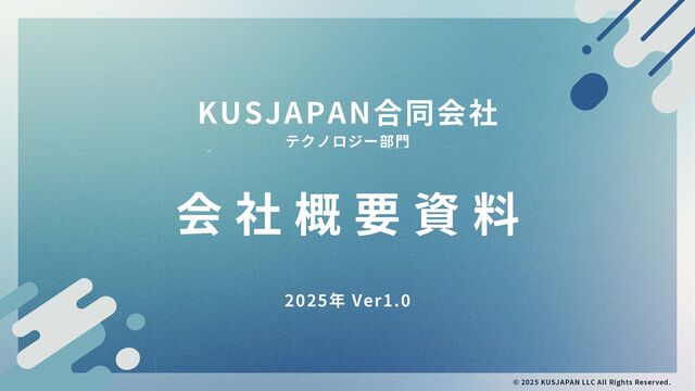 事 例 A C H I E V E M E N T © 2025 KUSJAPAN LLC All Rights Reserved. AI議事録 on Microsoft Teams(プロダクトサービス) ▪プロダクト概要 Microsoft Teamsでの会議内容を自動で要約し、SharePoint上に議事録を格納 するサービスを提供 ▪導入事例 国内社員数500名・売上規模300億円超の製造業にて導入済み ▪技術スタック Microsoft Teams / SharePoint / Azure Open AI / Power Platform 他 AI映像解析サービスSTAION(開発ベンダー側のソリューションパートナーとして参画) (参照)https://www.softbank.jp/biz/services/analytics/staion/ ▪概要 ソフトバンク様が提供するSTAIONにおけるAI映像解析用機器(エッジデバイ ス)の企画・開発の取りまとめ ▪ポジション デバイスベンダーであるサンダーコム・ジャパン社の企画営業を行うソリュー ションパートナーとしてソフトバンク様との折衝、契約交渉等を支援 ▪技術スタック等 Qualcommモジュール / Linux Ubuntu / Docker / TnsoFflow / Pytorch / etc...