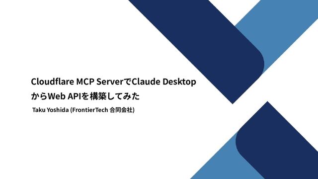 Cloudflare MCP ServerでClaude Desktop からWeb APIを構築してみた Taku Yoshida (FrontierTech 合同会社)