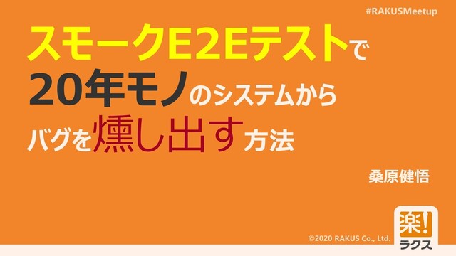 #RAKUSMeetup ©2020 RAKUS Co., Ltd. ©2020 RAKUS Co., Ltd. スモークE2Eテストで