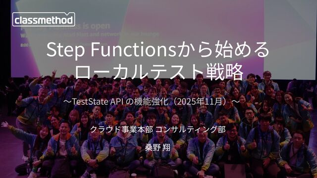クラウド事業本部 コンサルティング部 桑野 翔 Step Functionsから始める ローカルテスト戦略 〜TestState API の機能強化(2025年11⽉)〜