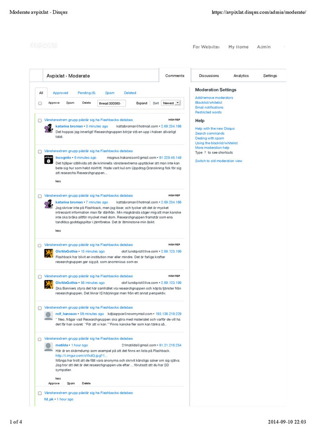 [email protected] • 81.229.46.149 Vänsterextrem grupp påstår sig ha Flashbacks databas Incognito • 3 hours ago Som andra nämnt bör så många som möjligt göra polisanmälningar mot den sk Researchgruppen. Ju fler anmälningar desto bättre!