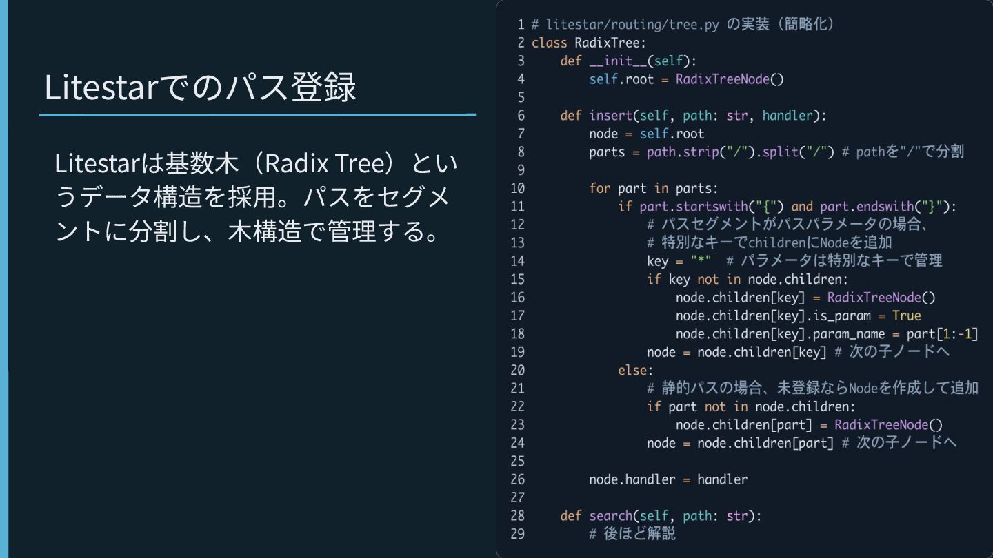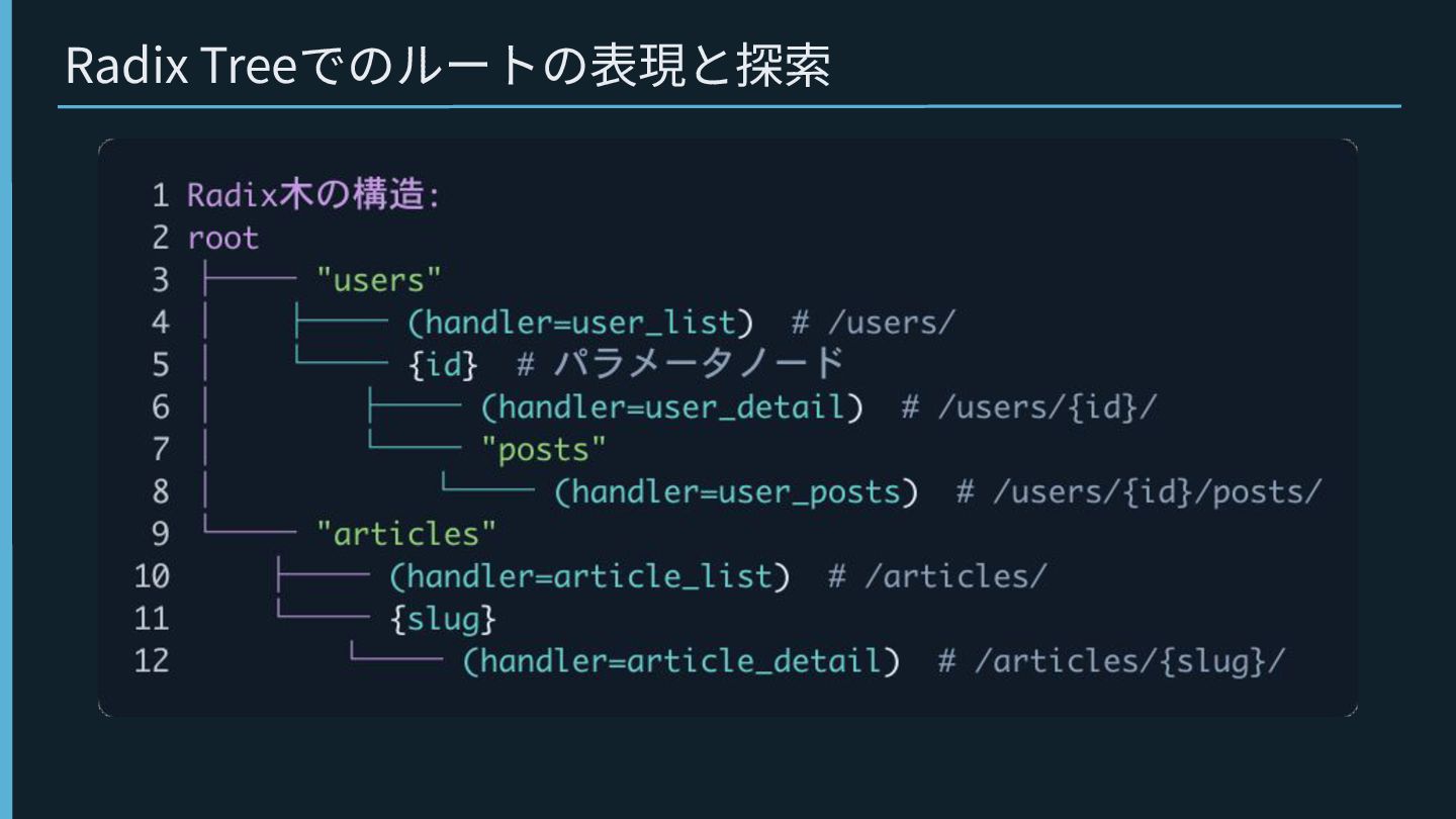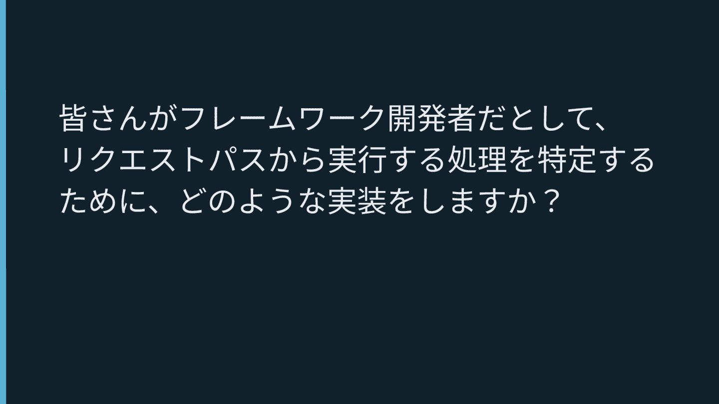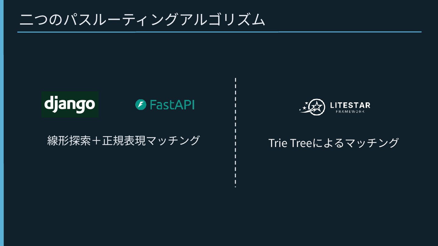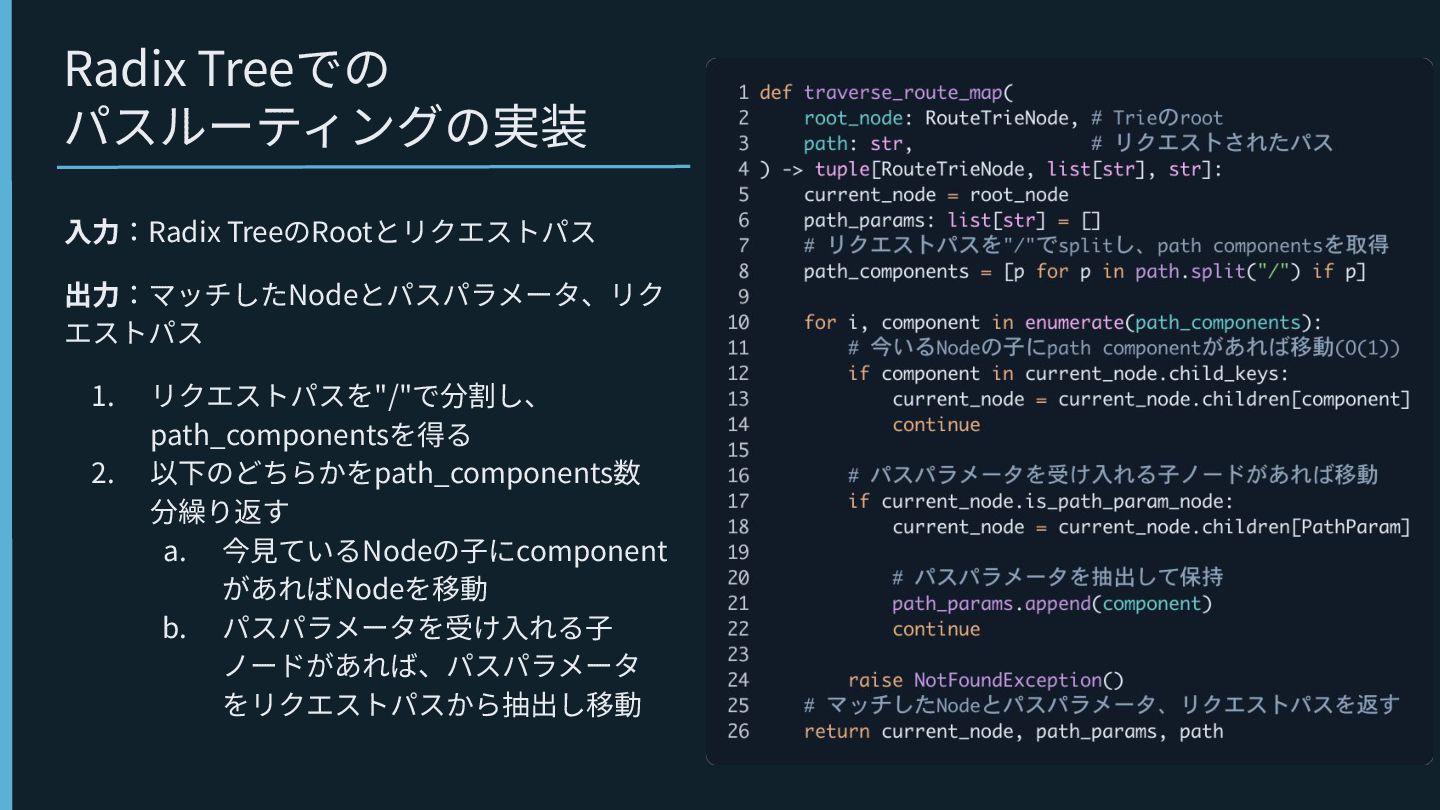 dispatch: switch (*pattern*+) { case SRE_OP_LITERAL: ** 文字比較処理 成功時: goto dispatch */ /*. 失敗時: goto exit */ case SRE_OP_BRANCH: ** 分岐処理 分岐ごとにDO_JUMPする */ /*. 成功時: goto exit */ /*. 失敗時: goto exit */ ** ほか大量の opcode **. */ } exit: ** コンテキストをpopし、一つ前のコンテキストをロード */ goto jumplabel; } #define DO_JUMPX(jumpvalue, jumplabel, nextpattern, toplevel_) \ ** PC, SPの現在の状態を保存 */ \ ** 新しいコンテキストを作りスタックへpush */ \ ** match関数のメインループの先頭へ */ \ goto entrance; \ ** 新しいコンテキストでの評価後ここに戻る */ \ jumplabel: \ ** 保存したPC, SPを復元 */ \ スタックの明示的な管理と goto文により仮 想マシン上での分岐を実現