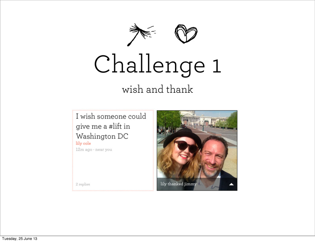 Challenge 1 wish and thank Tuesday, 25 June 13