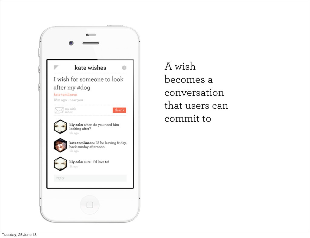 A wish becomes a conversation that users can commit to
