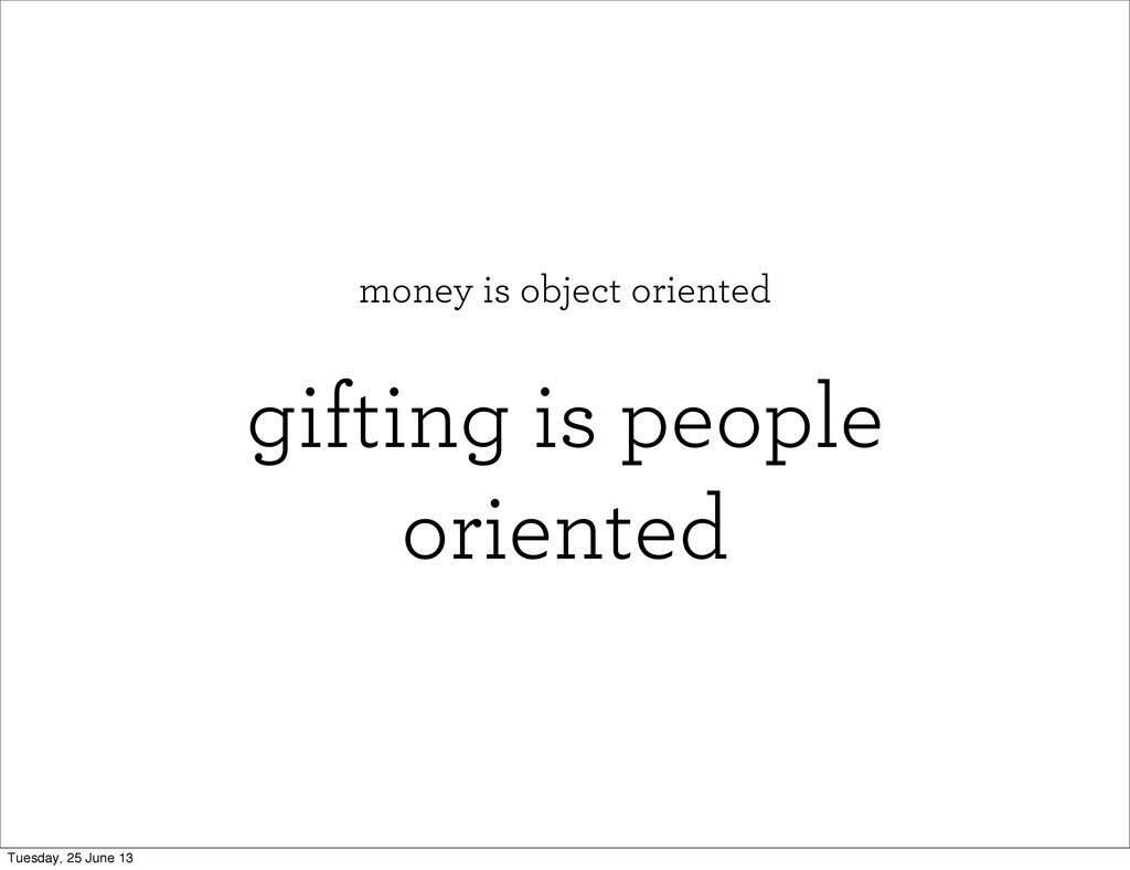 gifting is people oriented money is object oriented Tuesday, 25