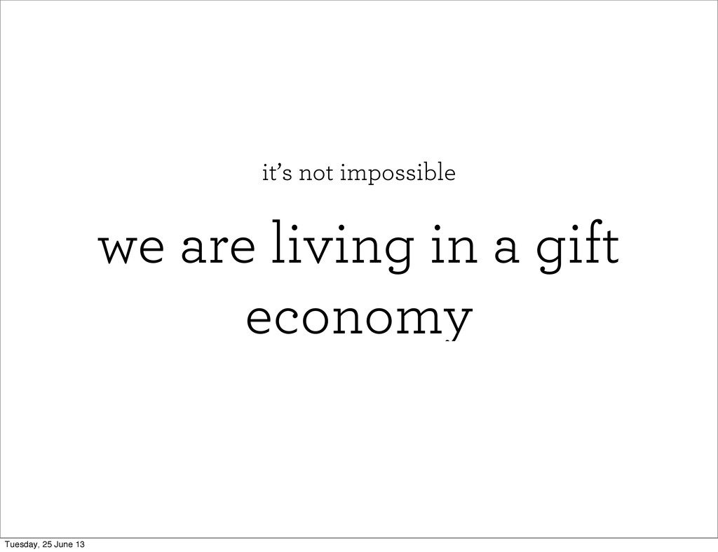 we are living in a gift economy it’s not impossible
