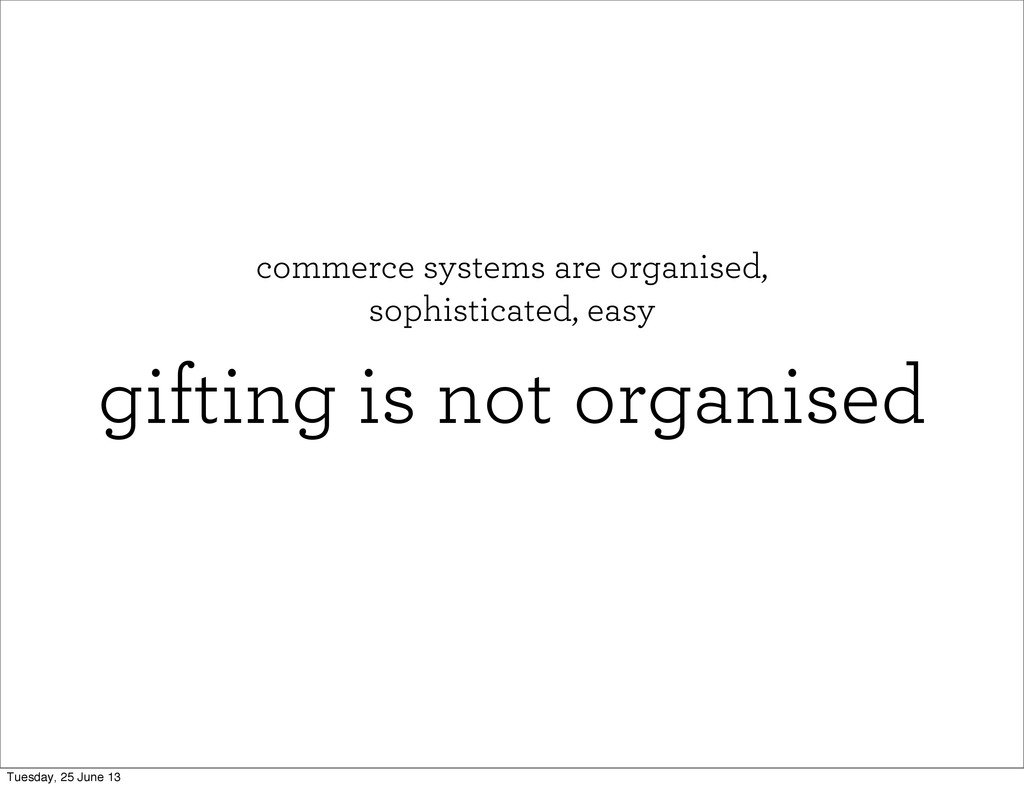 gifting is not organised commerce systems are organised, sophisticated, easy