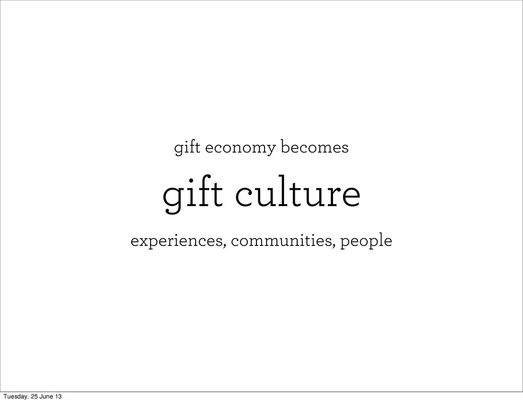 gift culture experiences, communities, people gift economy becomes Tuesday, 25