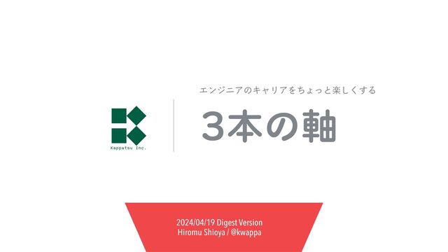 Kappatsu Inc. 3本の軸 エンジニアのキャリアをちょっと楽しくする 2024/04/19 Digest Version Hiromu Shioya /