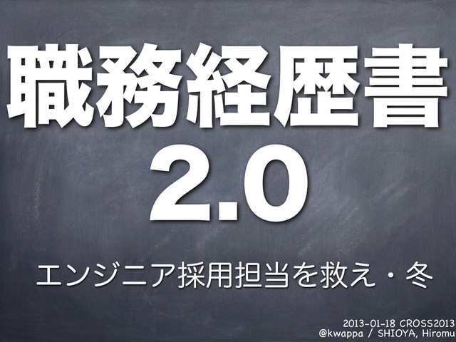 ৬ܦྺॻ 2013-01-18 CROSS2013 @kwappa / SHIOYA, Hiromu ΤϯδχΞ࠾༻୲Λٹ͑ɾౙ