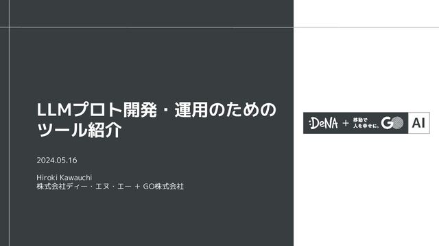 AI 2024.05.16 Hiroki Kawauchi 株式会社ディー・エヌ・エー + GO株式会社 LLMプロト開発・運用のための ツール紹介