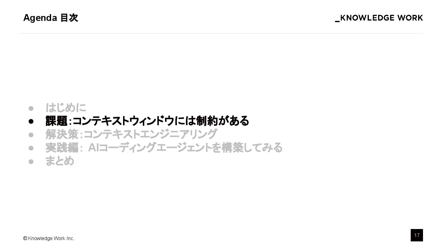 具体例としてAI Coding Agentの構築を題材に、実務に直結する文脈設計のポイントを紹介します。