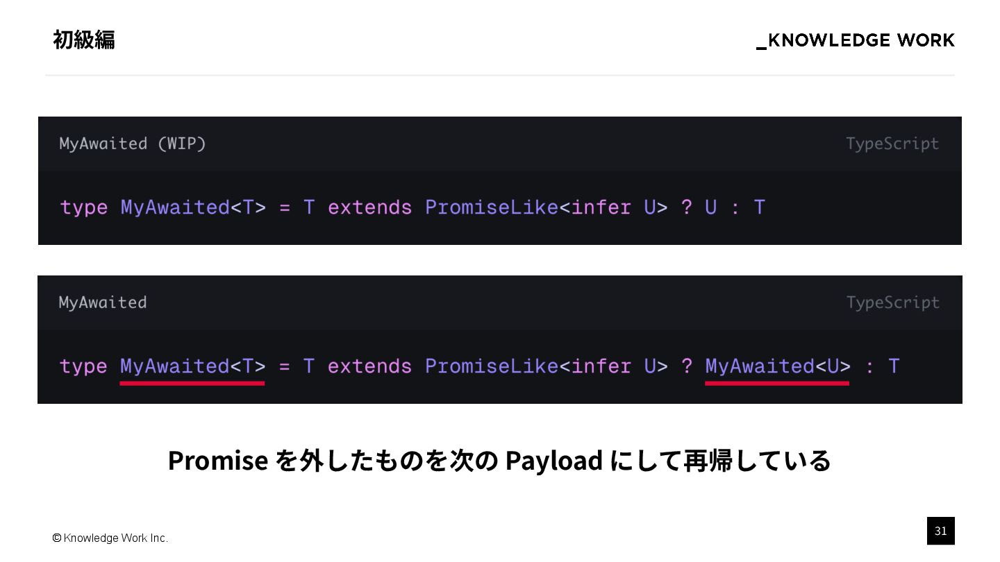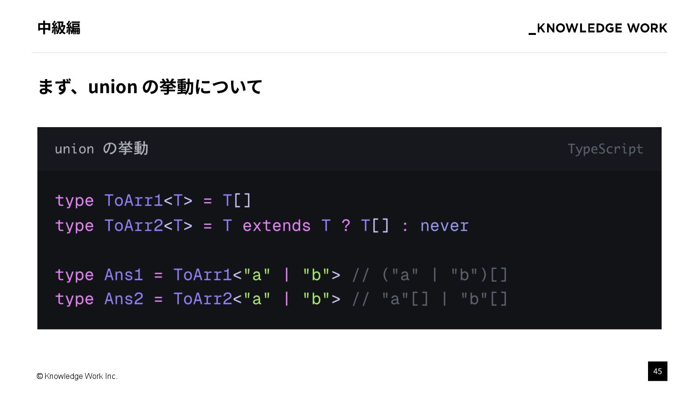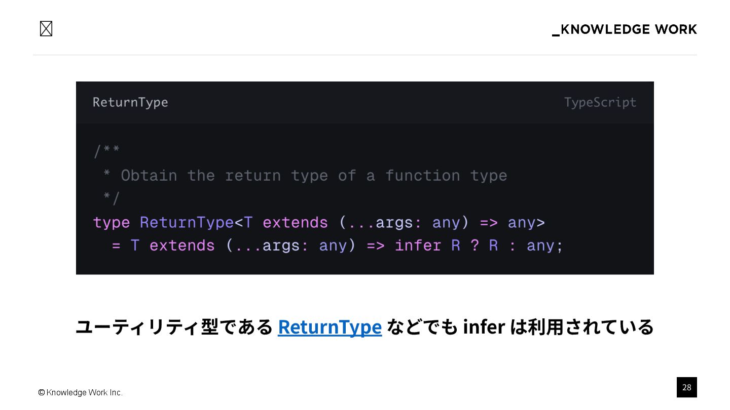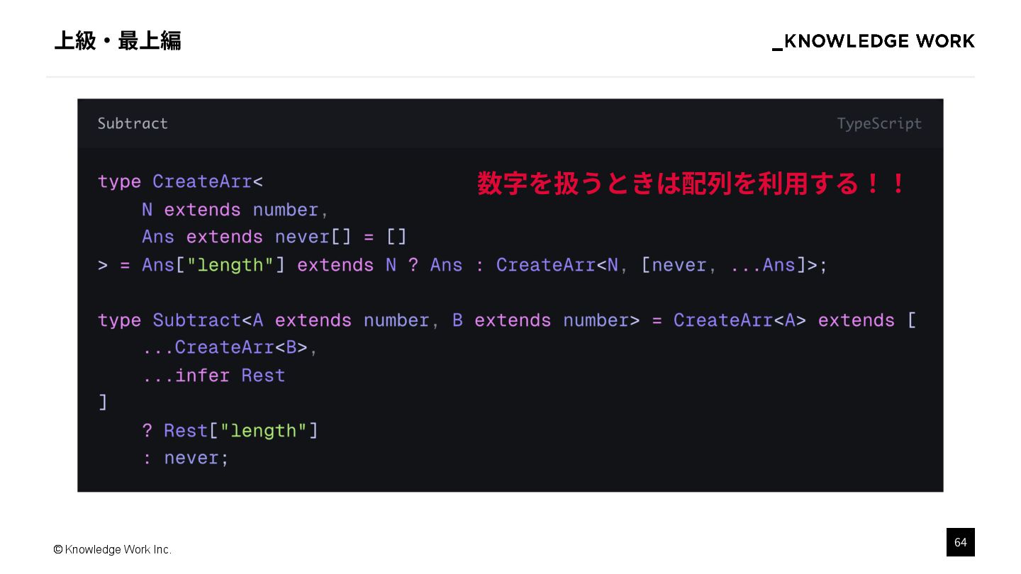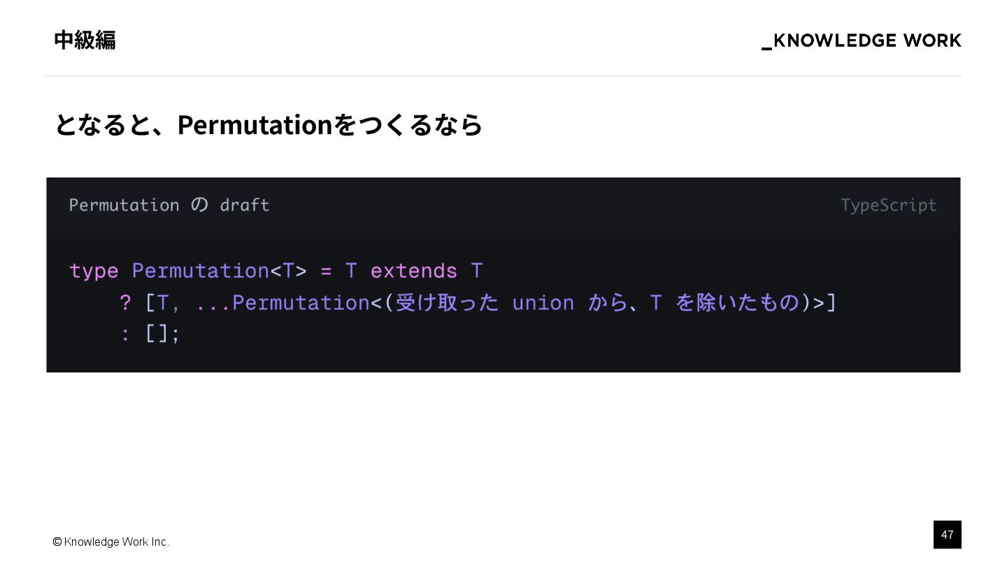 そこで本セッションでは、type-challenges の全問題に取り組んだ自分が、解く中で学んだ型パズルのテクニックや、実務に活かせそうな部分などを「エッセンス」として紹介します。