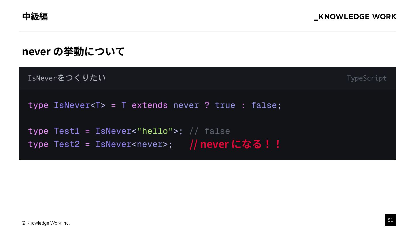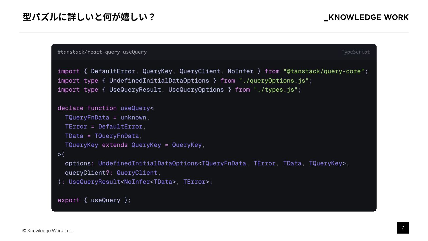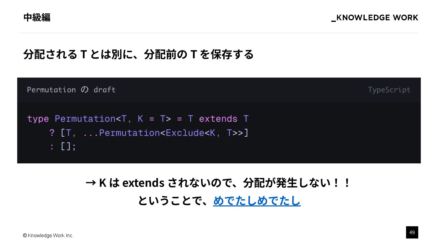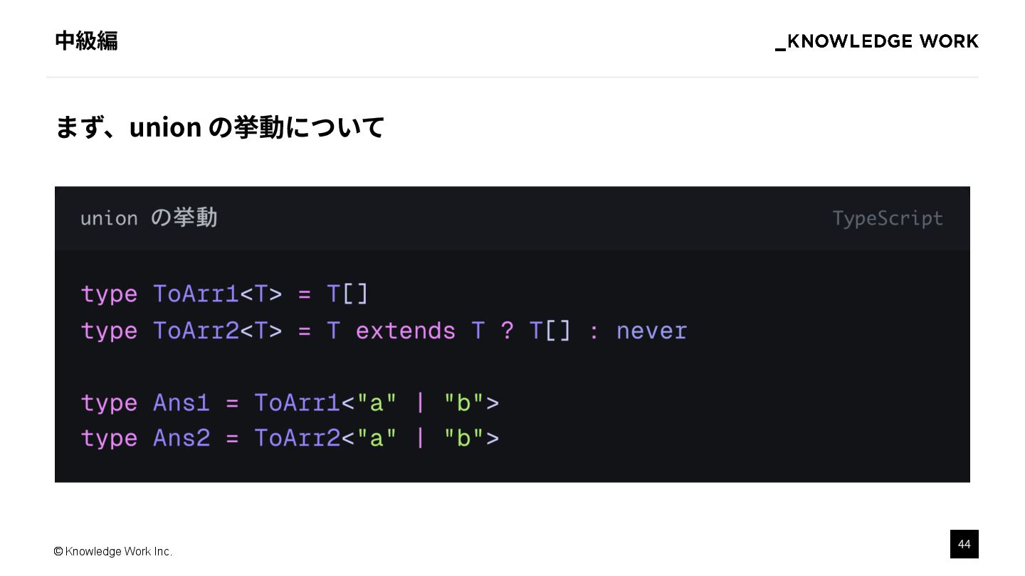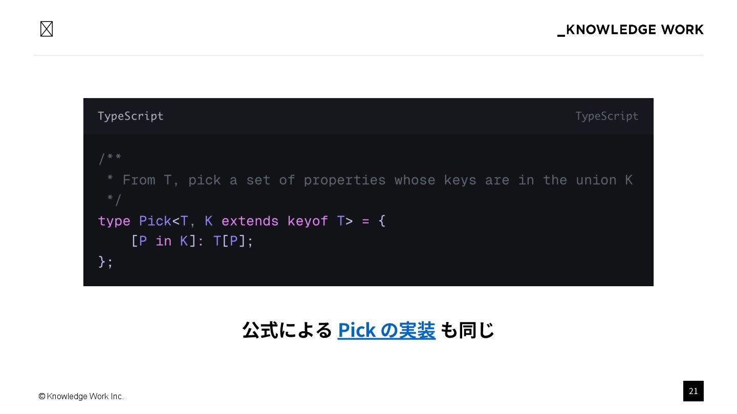 そこで本セッションでは、type-challenges の全問題に取り組んだ自分が、解く中で学んだ型パズルのテクニックや、実務に活かせそうな部分などを「エッセンス」として紹介します。