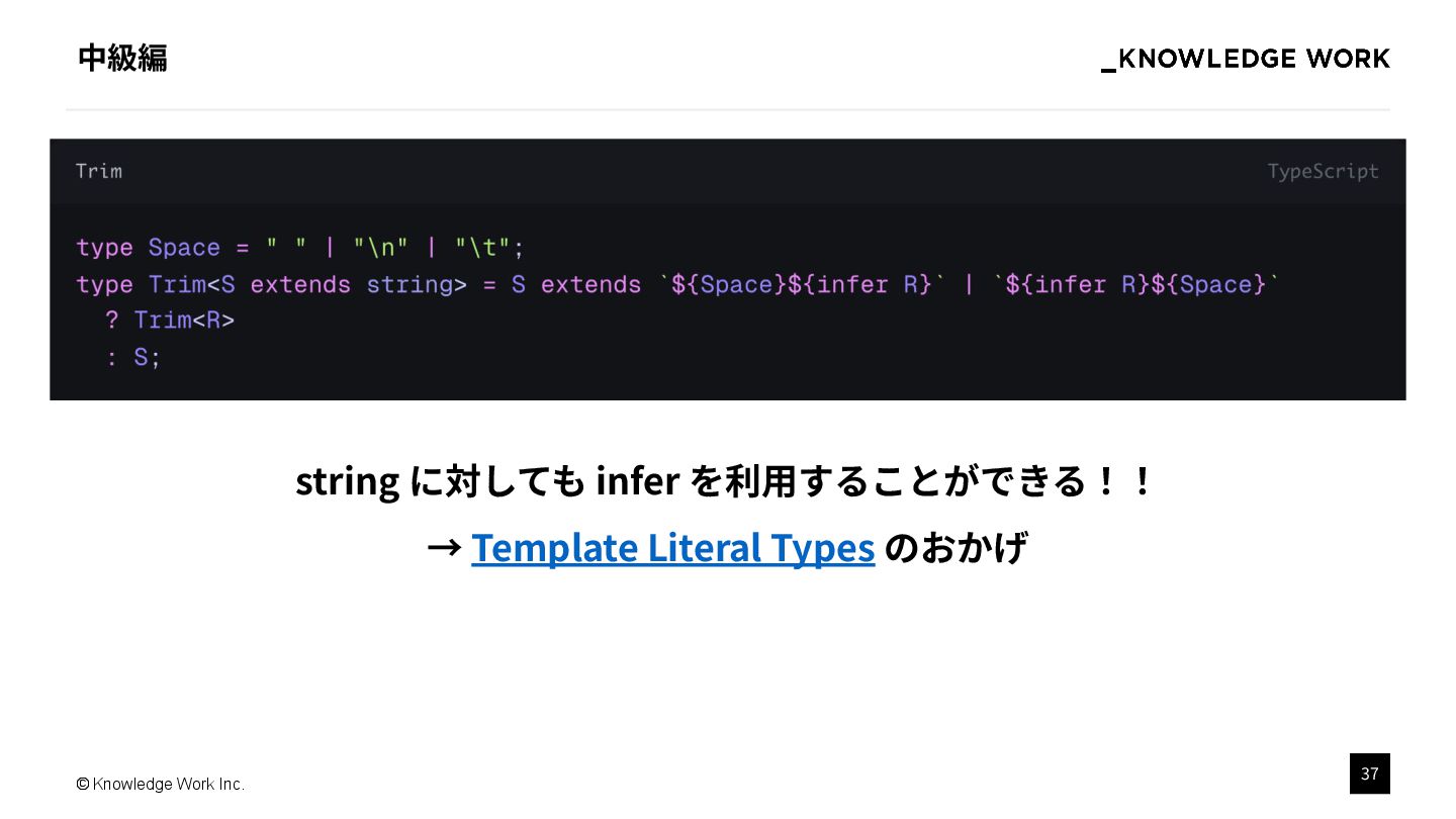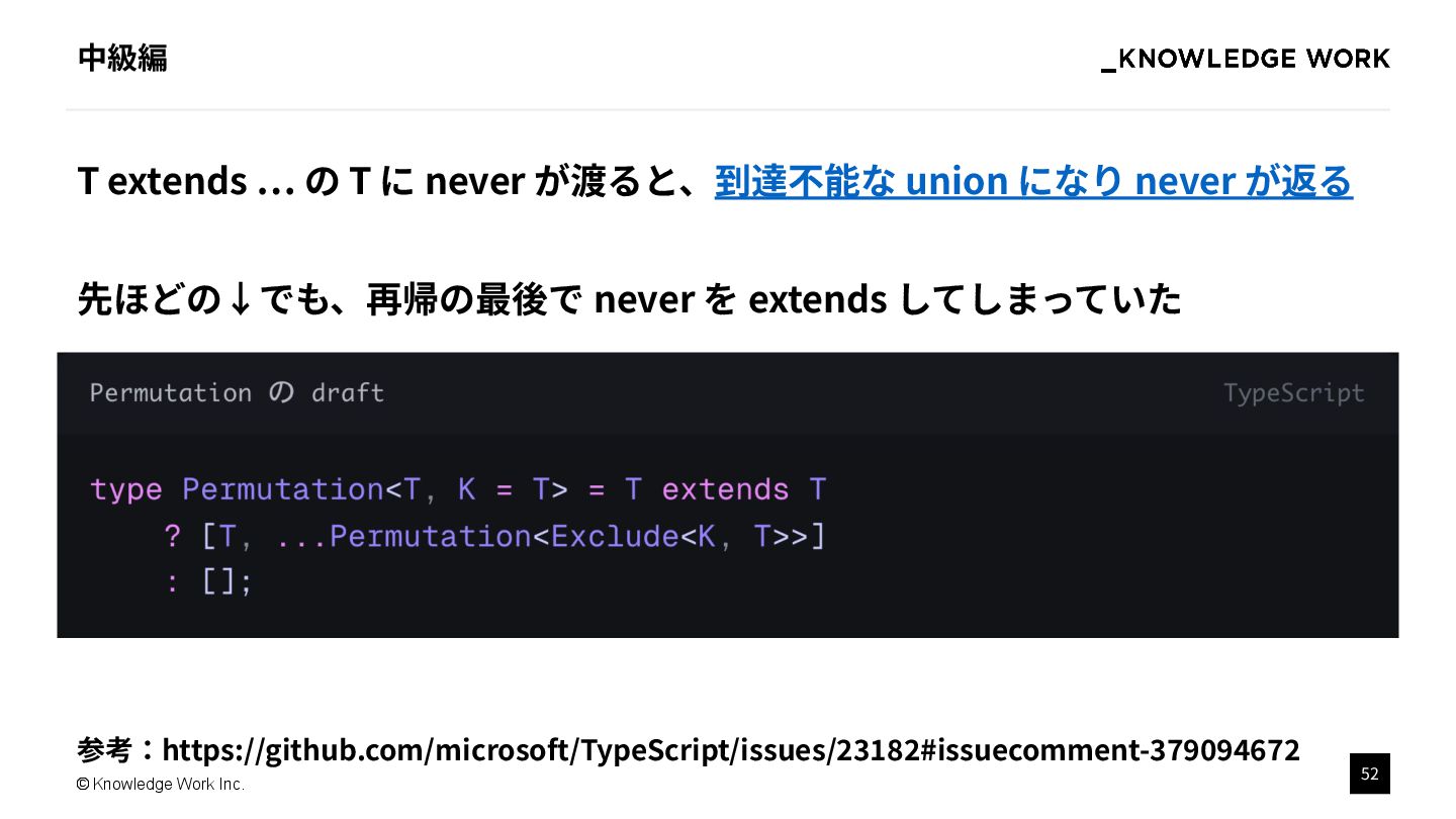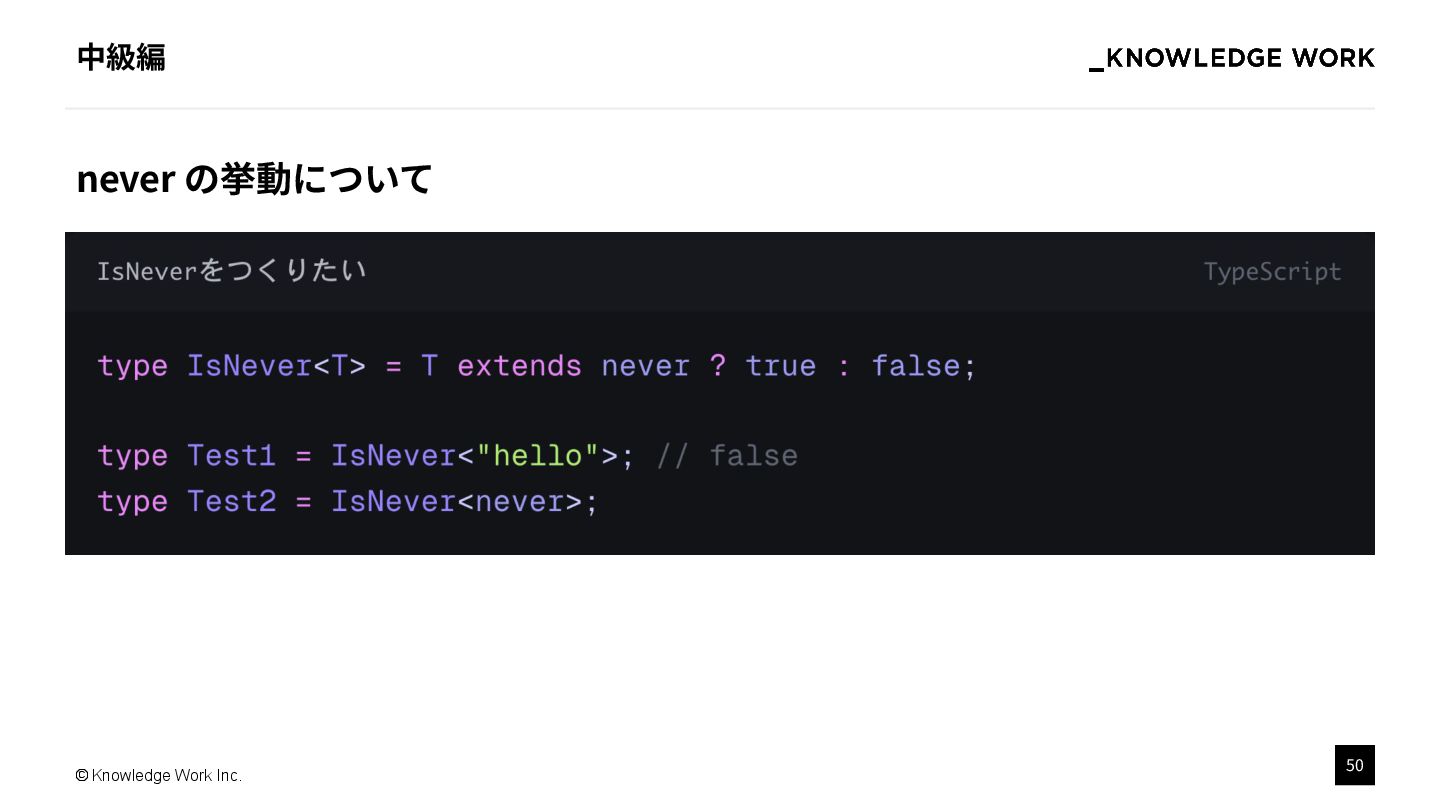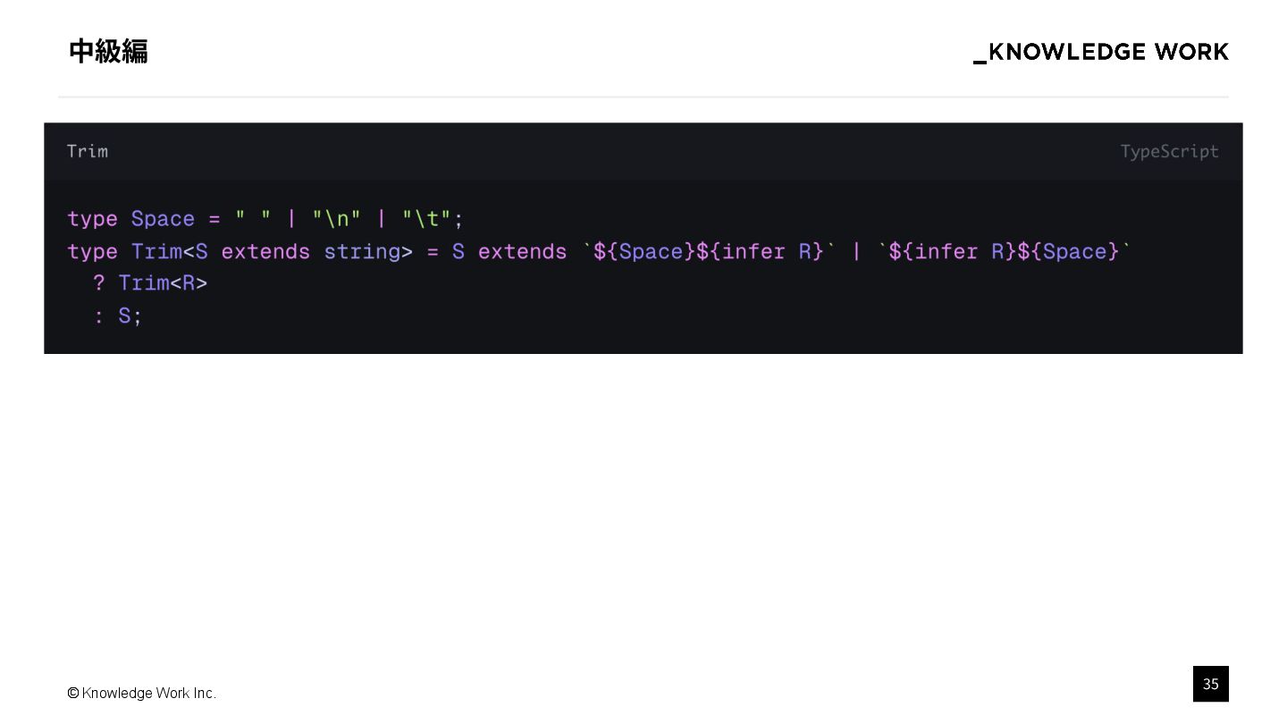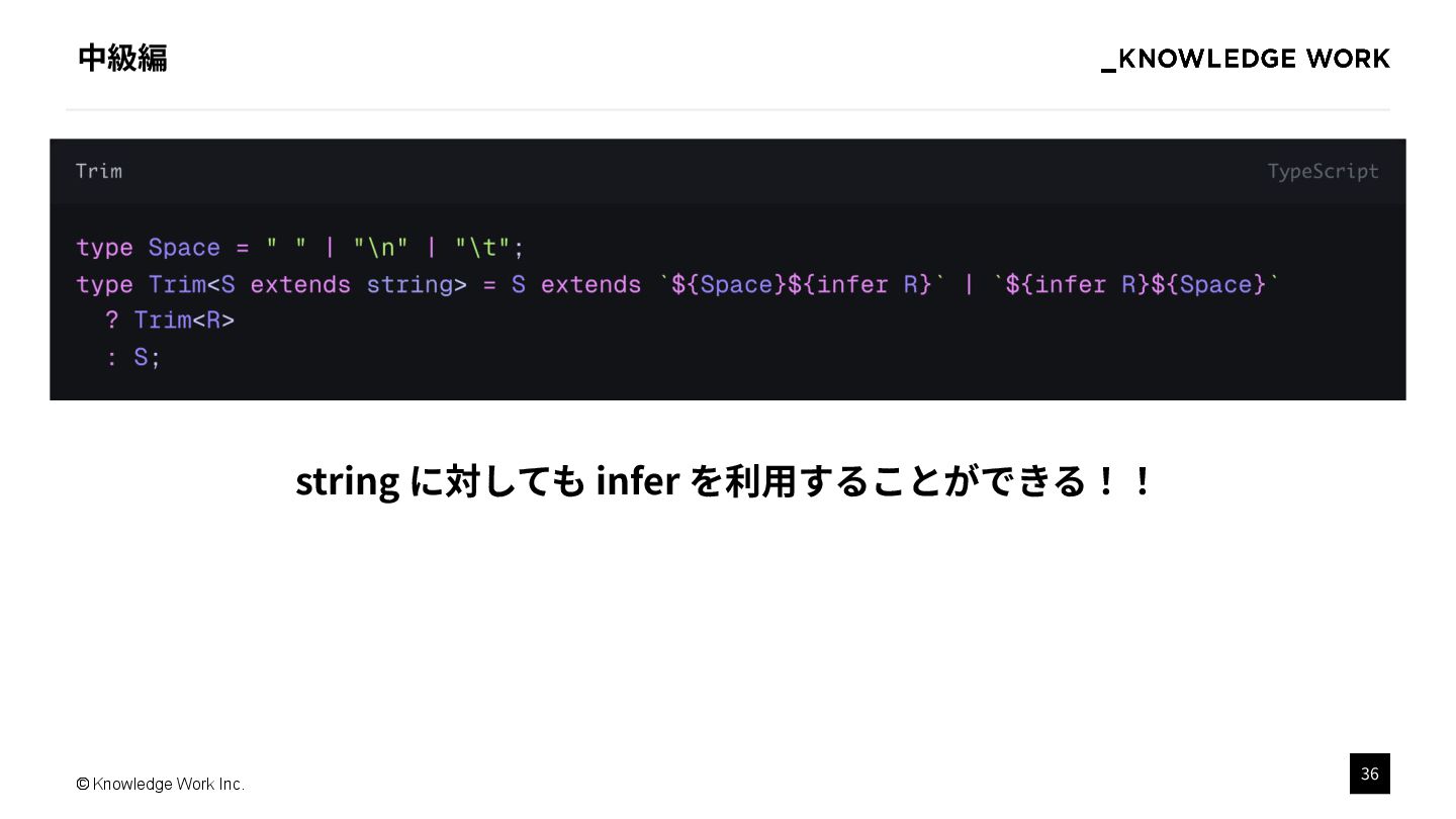 そこで本セッションでは、type-challenges の全問題に取り組んだ自分が、解く中で学んだ型パズルのテクニックや、実務に活かせそうな部分などを「エッセンス」として紹介します。