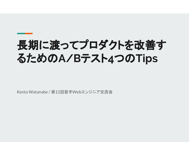 長期に渡ってプロダクトを改善す るためのA/Bテスト4つのTips Kenta Watanabe / 第12回若手Webエンジニア交流会