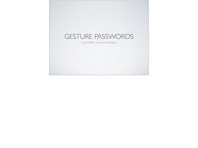 UIGestureRecognzier • Standard objects • would love to access to write to CPU like TouchID • Wasn’t concerned about actual point accuracy. • Import note about UIGestureRecognizers. • By default once the gesture is recognized touches* methods are cancelled. Result is that you can’t add “extra” processing in the standard method. • normally this isn’t a problem b/c all you care about it knowing what “type” of gesture occurred, but I need to “draw” the gesture on the screen. • cancelsTouchesInView = NO; * Need to add in feature that allows to register “storage class”. By default would use NSUserDefaults. * too hard to have accurate variance for point, plus finger sizes are different. you could tell someone your password and it would fail