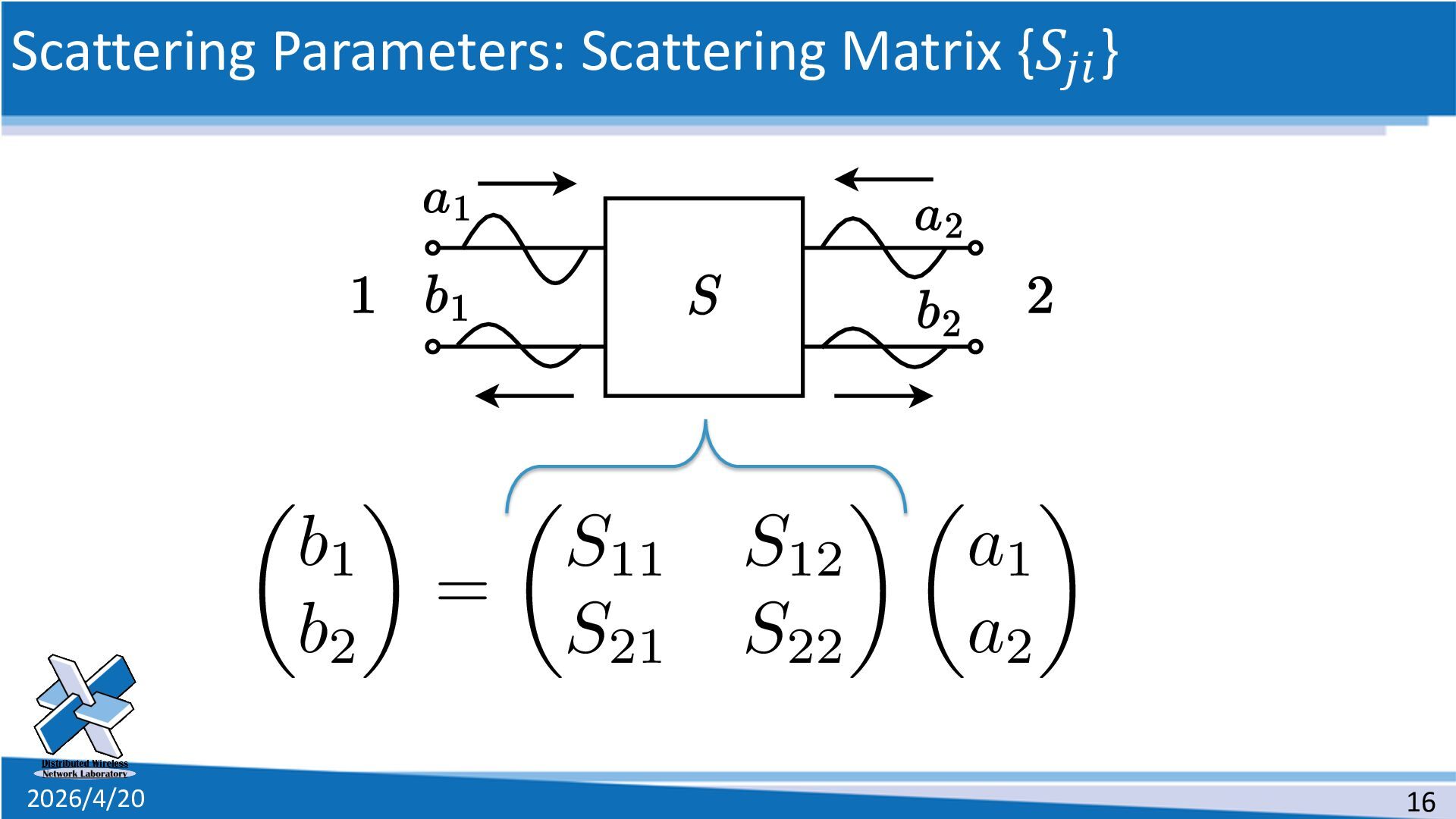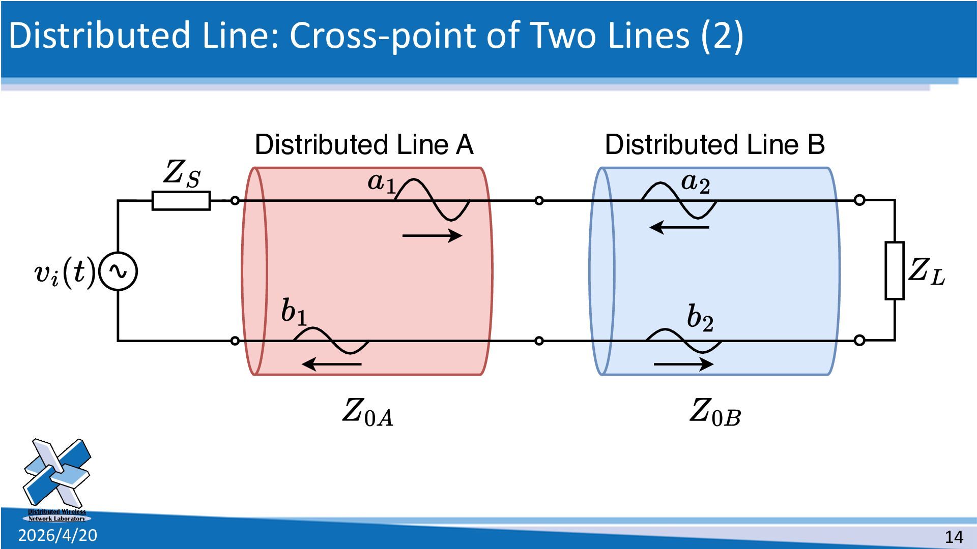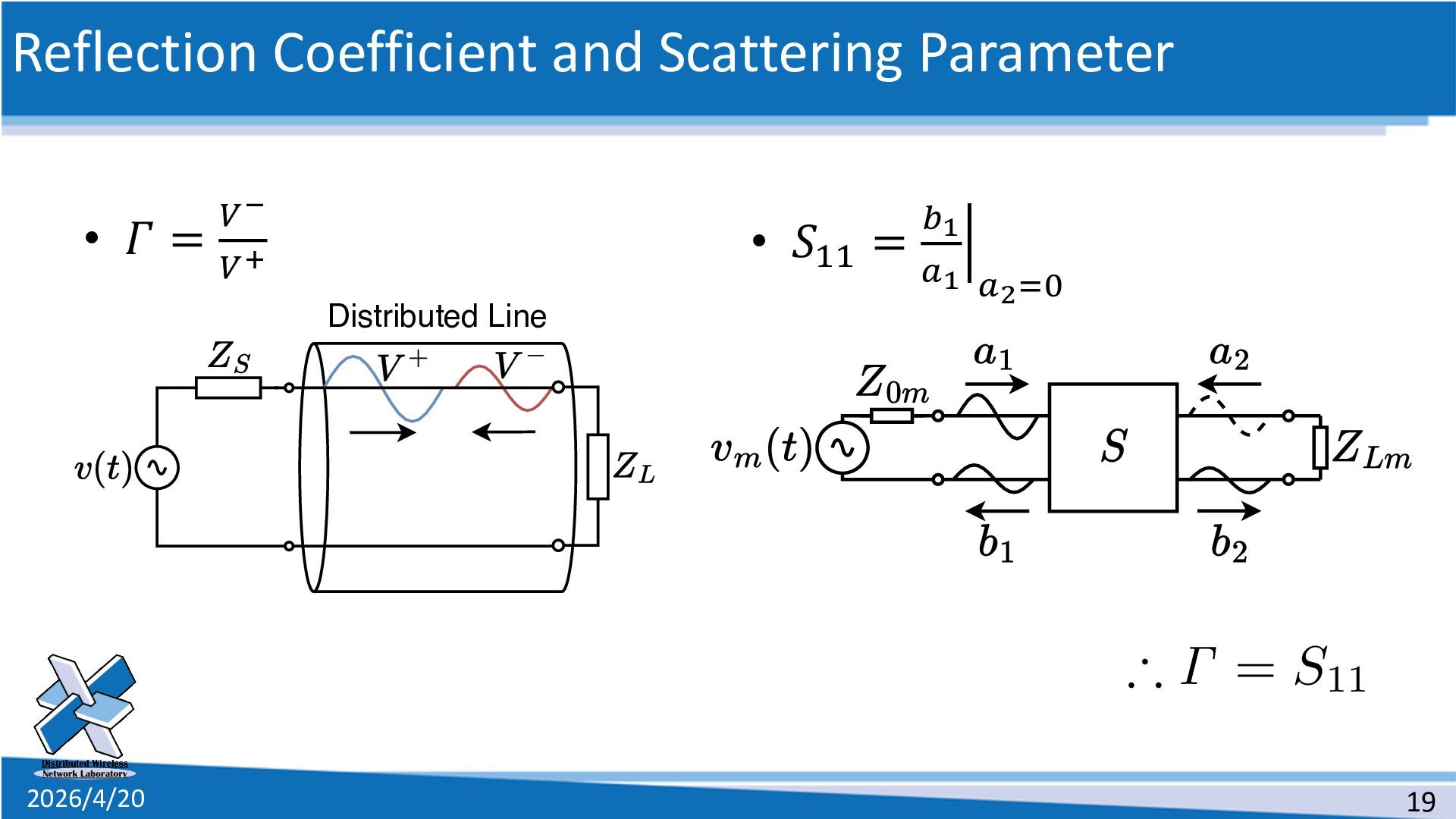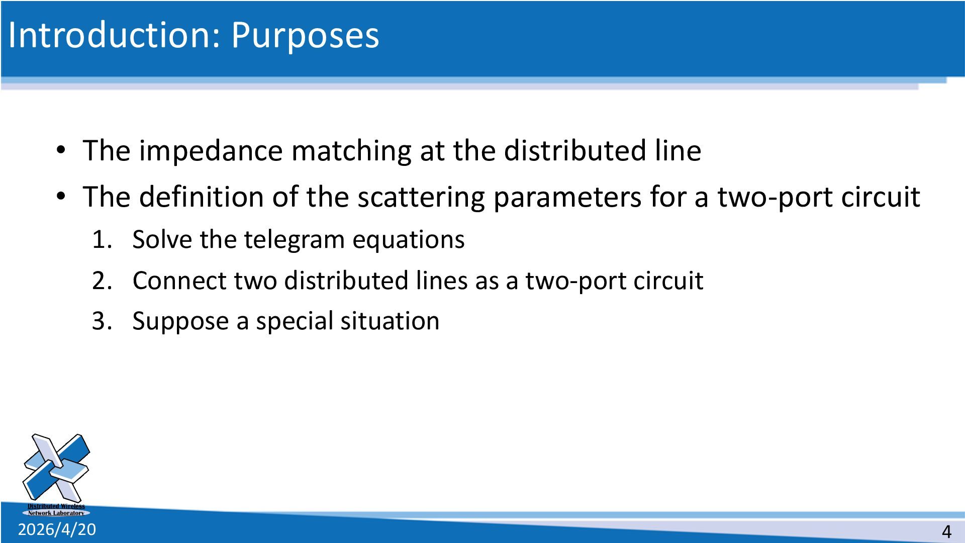 line • The definition of the scattering parameters for a two-port circuit 1. Solve the telegram equations 2. Connect two distributed lines as a two-port circuit 3. Suppose a special situation 4