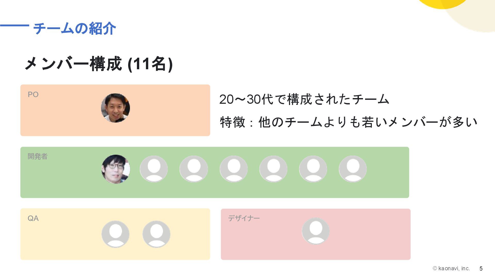チームの紹介 © kaonavi, inc. 5 メンバー構成 (11名) PO 開発者 QA