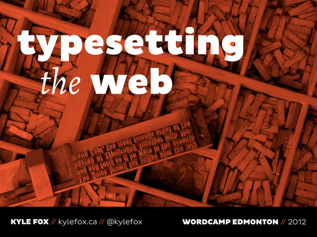This is a talk I gave at WordCamp Edmonton in November 2012. For other type, design & web nerdery, follow me on Twitter: http://twitter.com/kylefox