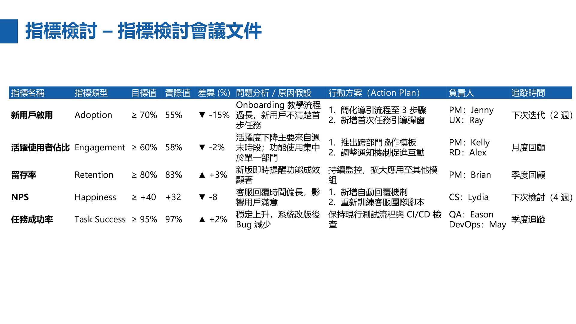 - 對於管理階層: 讓產品指標與業務目標緊密結合,驅動策略規劃