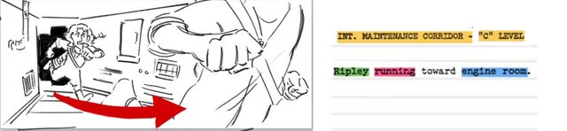 This board is made from a script from the 1979 film: Alien. I had never seen the film before so it was fun creating a scene only using the script descriptions, references of what the characters looked like, and my own imagination! It was very surprising to see that this scene was actually not in the original version of the movie but instead a deleted scene that is included only in certain versions of the movie.