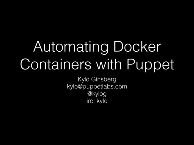 Automating Docker Containers with Puppet Kylo Ginsberg