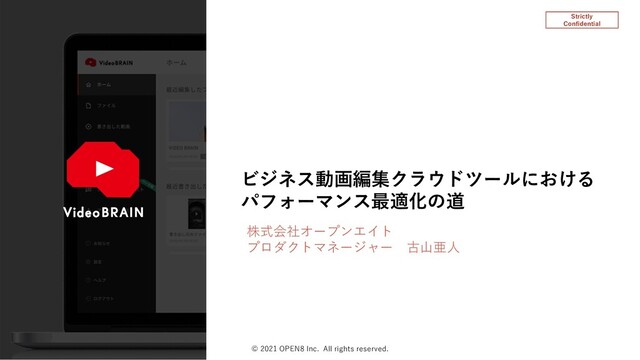 © 2021 OPEN8 Inc. All rights reserved. Strictly Confidential ビジネス動画編集クラウドツールにおける
