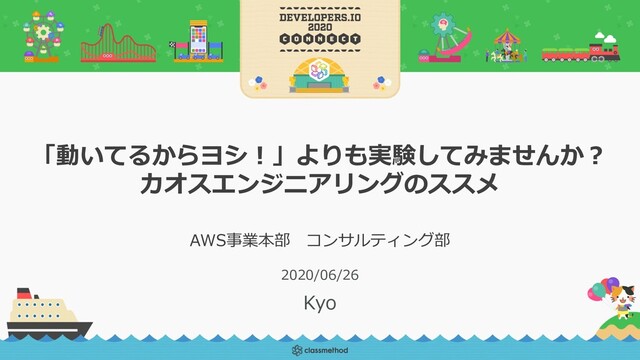 「動いてるからヨシ︕」よりも実験してみませんか︖ カオスエンジニアリングのススメ AWS事業本部 コンサルティング部 2020/06/26 Kyo