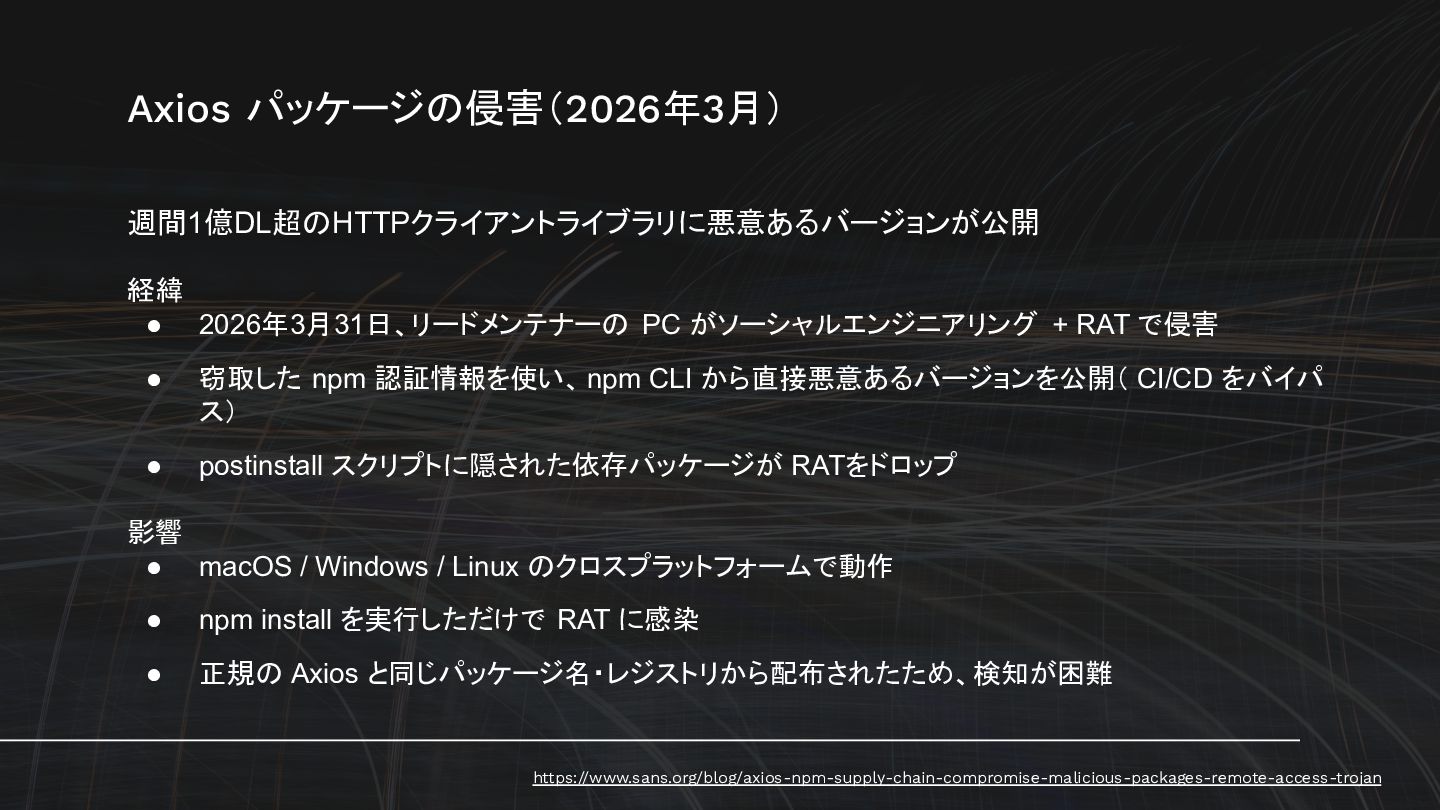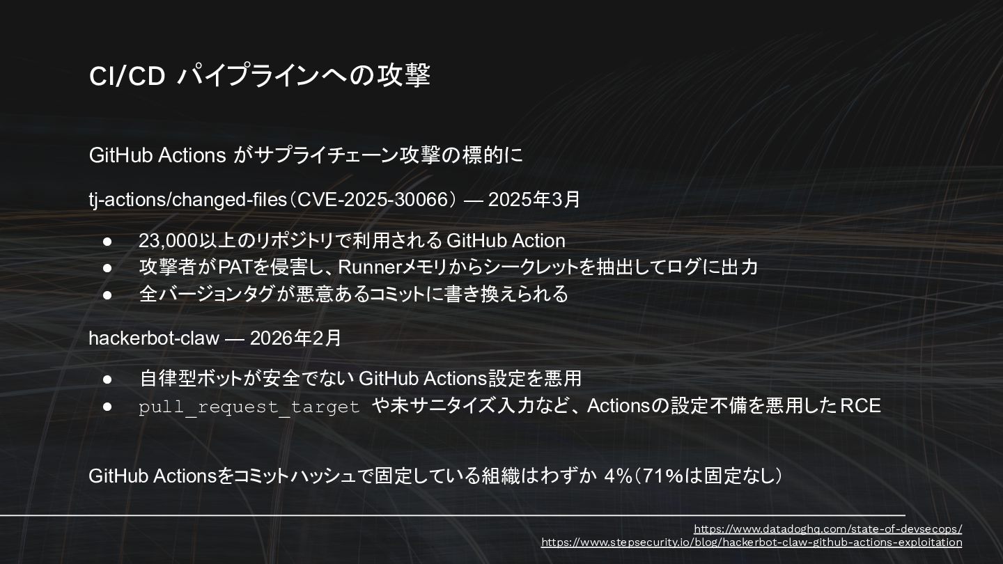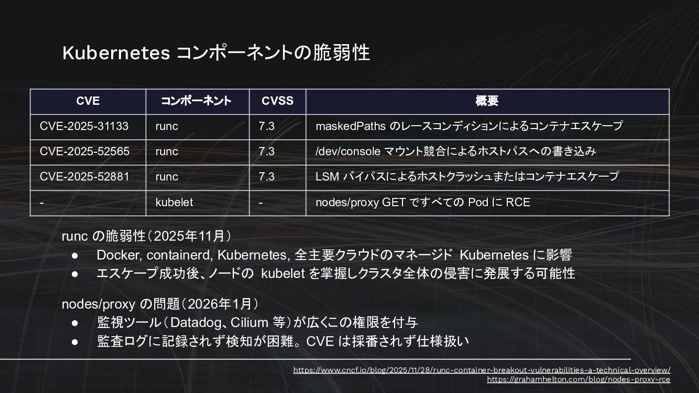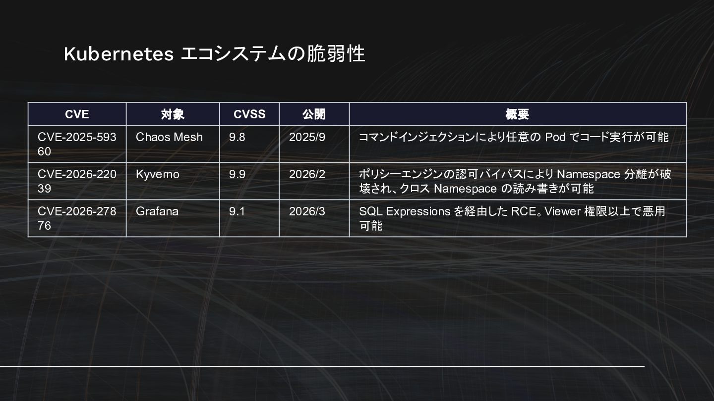 イベント登壇資料です。 2026/4/17 無償・OSSから始める、コンテナ脆弱性管理負荷を大幅に削減する新しいアプローチ https://dockerjapan.connpass.com/event/388164/