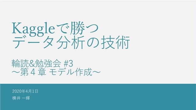 Kaggleで勝つ データ分析の技術 輪読&勉強会 #3 〜第4章 モデル作成〜 2020年4月1日 横井 一輝