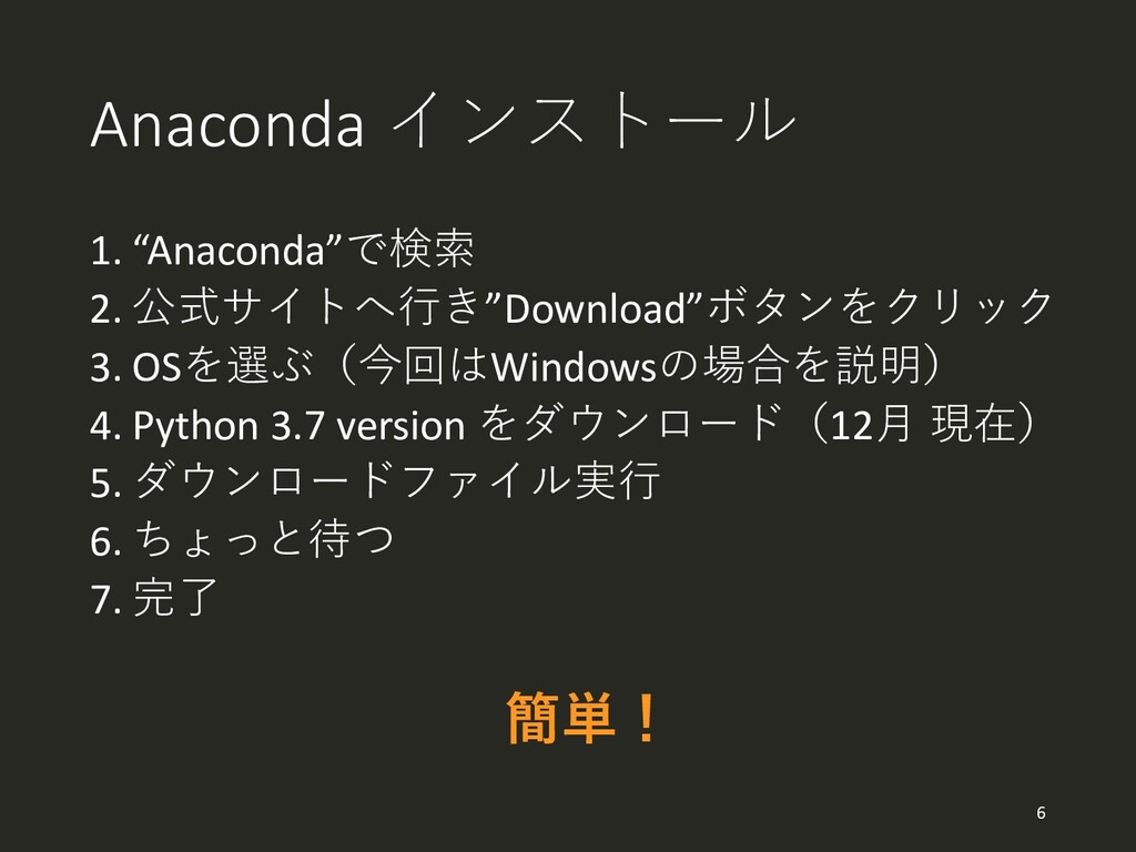 3.7 version をダウンロード(12月 現在) 5. ダウンロードファイル実行 6. ちょっと待つ 7. 完了 簡単! 6