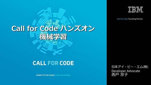 1 Call for Code ハンズオン 機械学習 ⽇本アイ・ビー・エム(株) Developer Advocate ⻄⼾