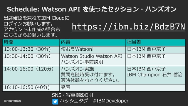 2019-06-15 (土) 13:00〜16:00に開催の 「Watson API を使ったセッション・ハンズオン」の 「使おうWatson!」の資料です。 (開催前の場合は変更の可能性があります)